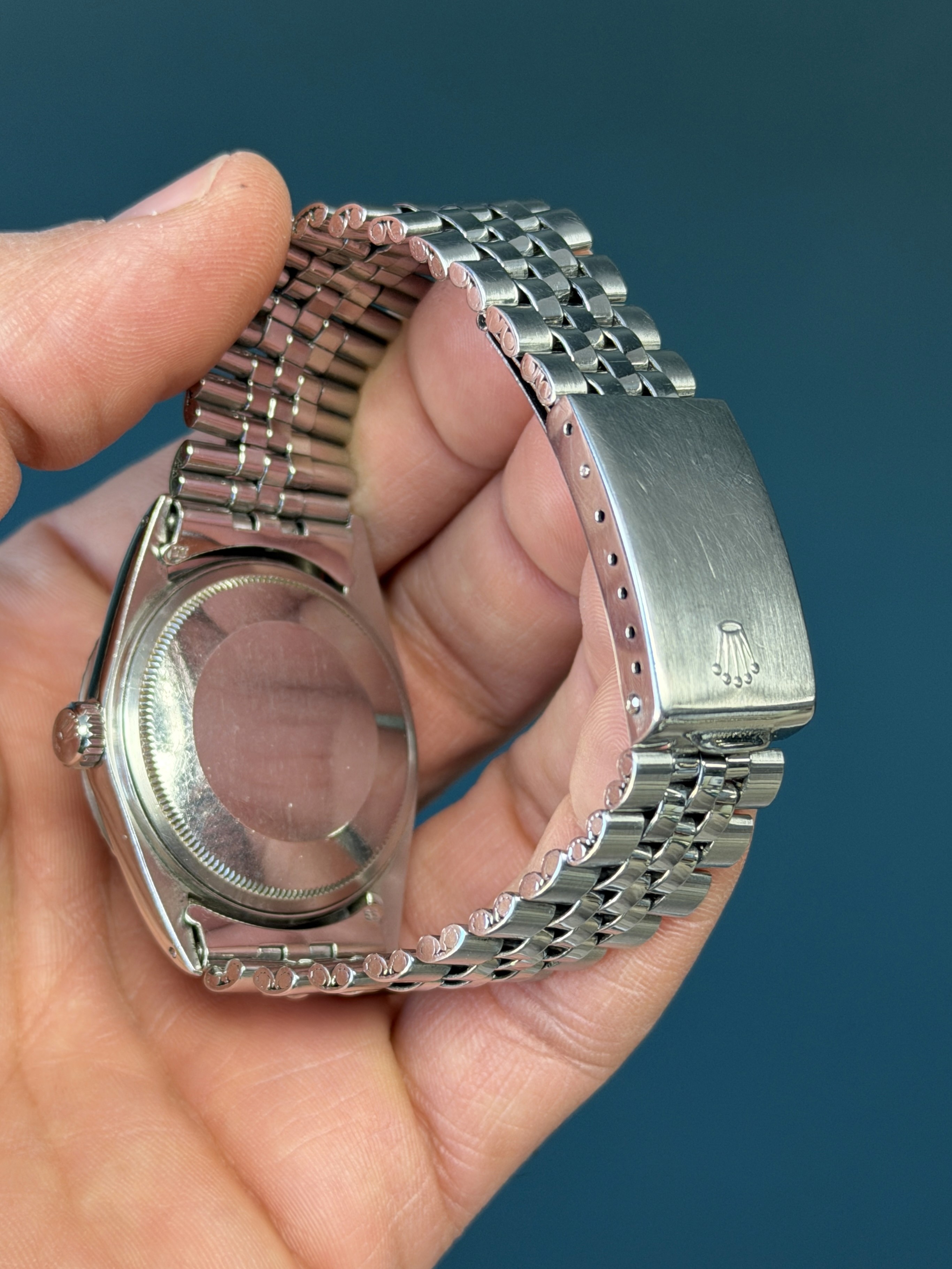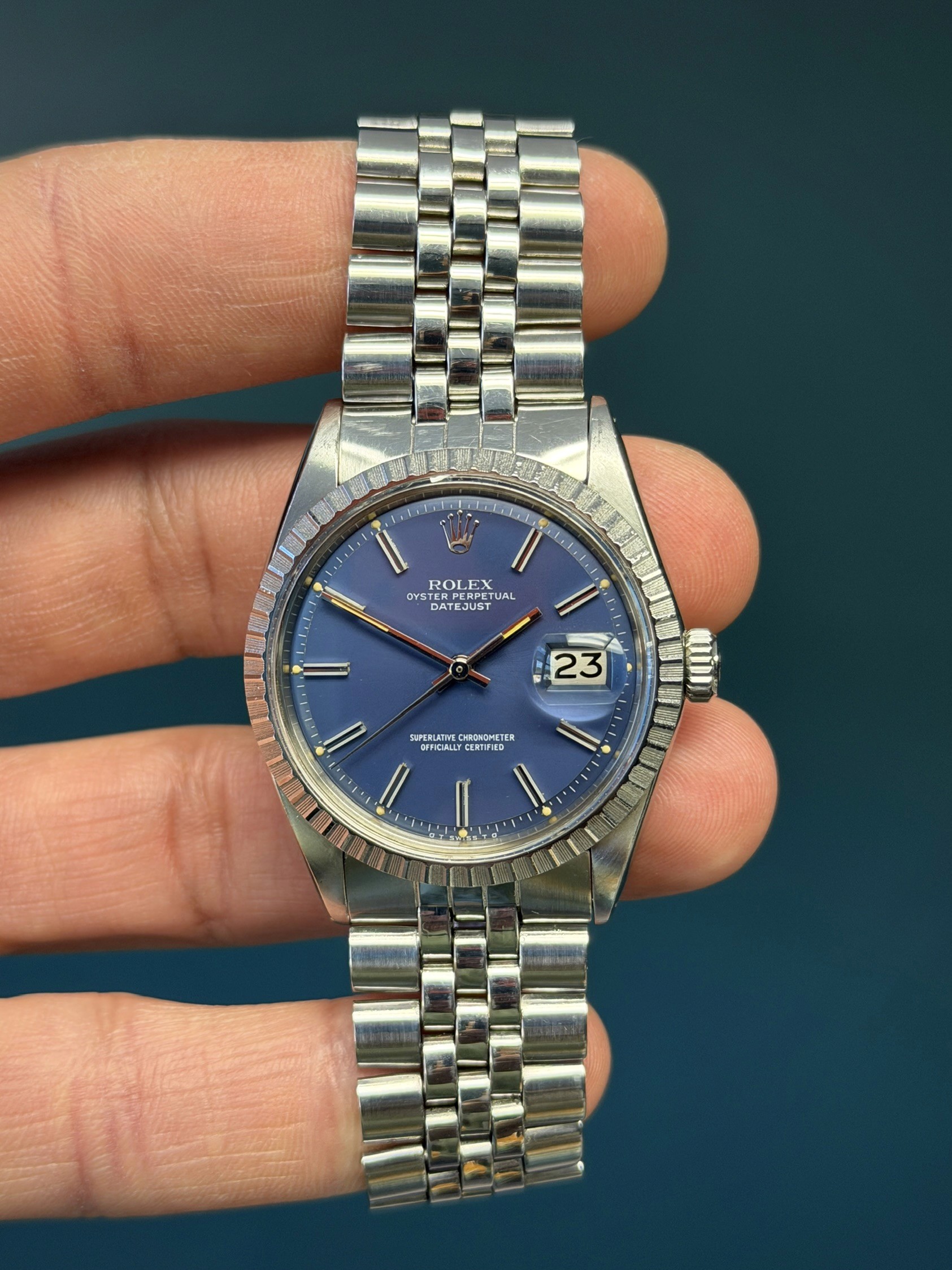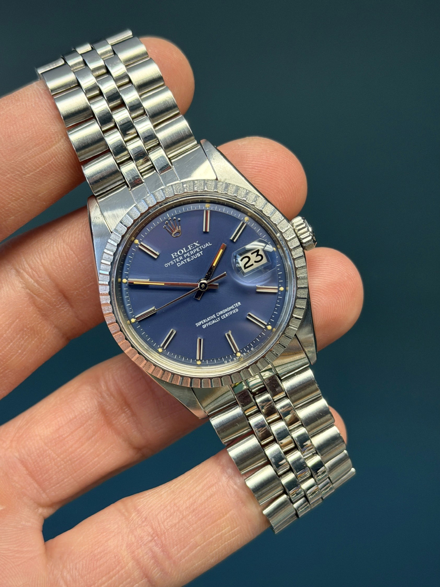 The Vintage Rolex 1603 Date just is an iconic watch known for its classic design, precision, and historical significance. With a stainless-steel case, a distinctive engine turned bezel, and a reliable automatic movement, this 36mm timepiece is a versatile choice suitable for both men and women. The watch's date function, with the signature Cyclops lens, adds to its practicality and aesthetic appeal. It's a piece of horological history, dating back to the early 1960s and early 1980s, showcasing Rolex's enduring commitment to craftsmanship and innovation.