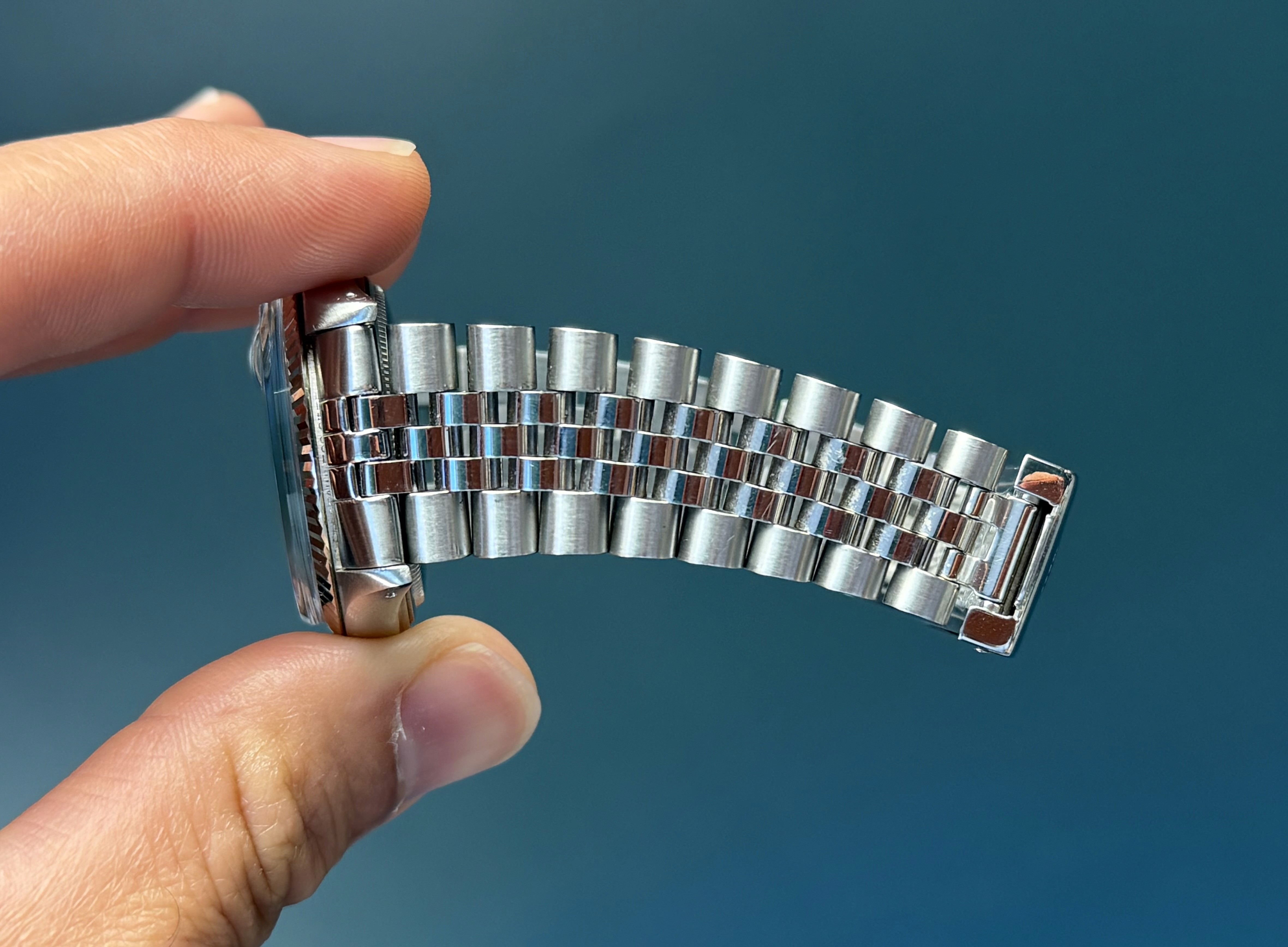 Today's example comes to us in excellent preowned condition. The case has excellent thick lugs. The linen dial is excellent showing nice rich pumpkin patina on the hands and full thick hr plots. The bracelet has 5 total removable links and shows no stretch. Here is an excellent Linen dial with amazing patina ready to go.