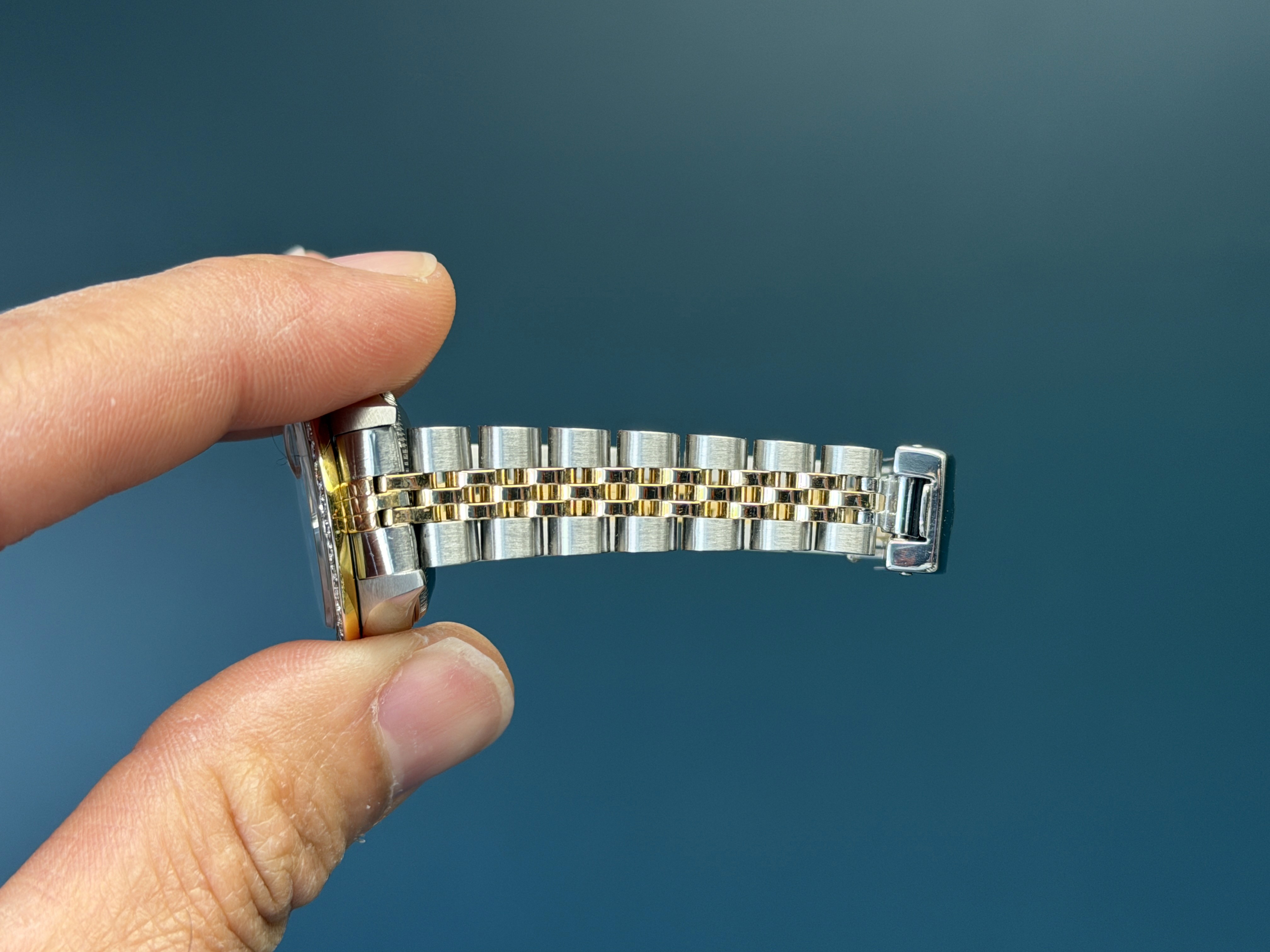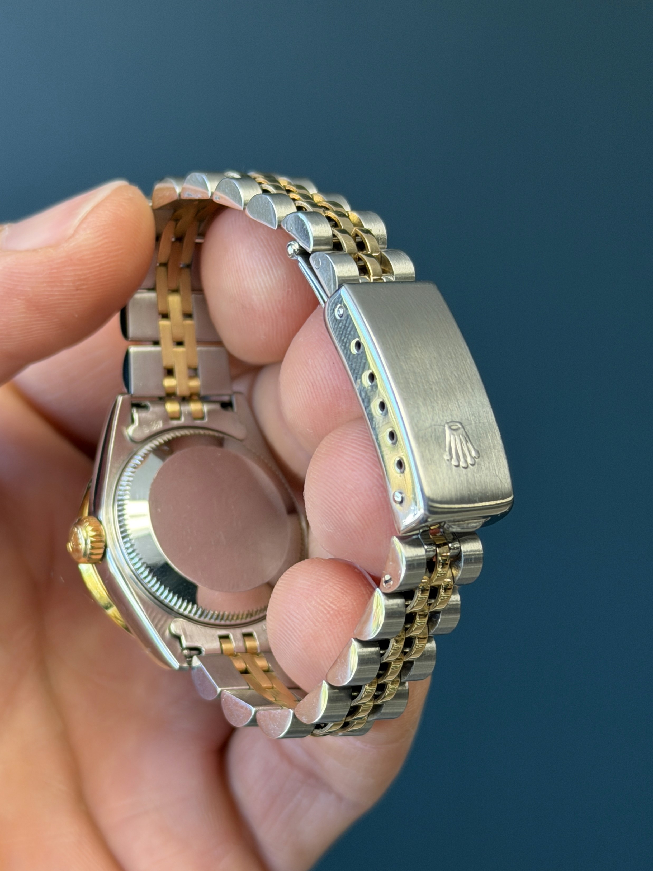 A standout vintage piece from Rolex, this Lady-Datejust reference 69173 pairs exceptional condition with striking aesthetics. It features an excellent unpolished no-holes case with crisp, well-defined lines, showcasing its originality and careful preservation.