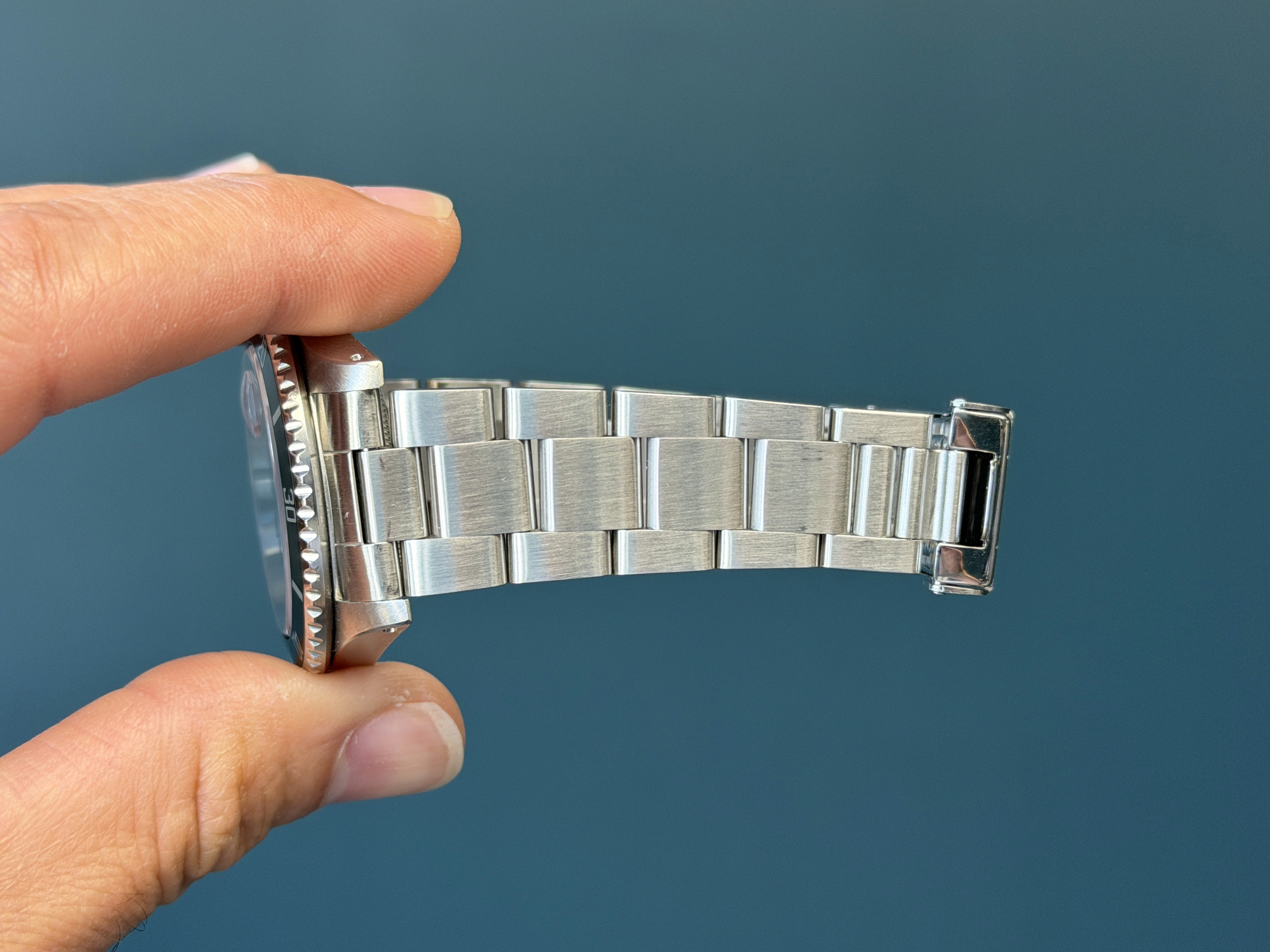 Today we bring you a beautiful Submariner reference 16610 accompanied by full complete set. This example has an excellent razor-sharp case. The dial and Saphire crystal are excellent showing no visible wear. The oyster bracelet has 12 total links plus dive extension and shows no stretch. This example is running COSC and keeping time.