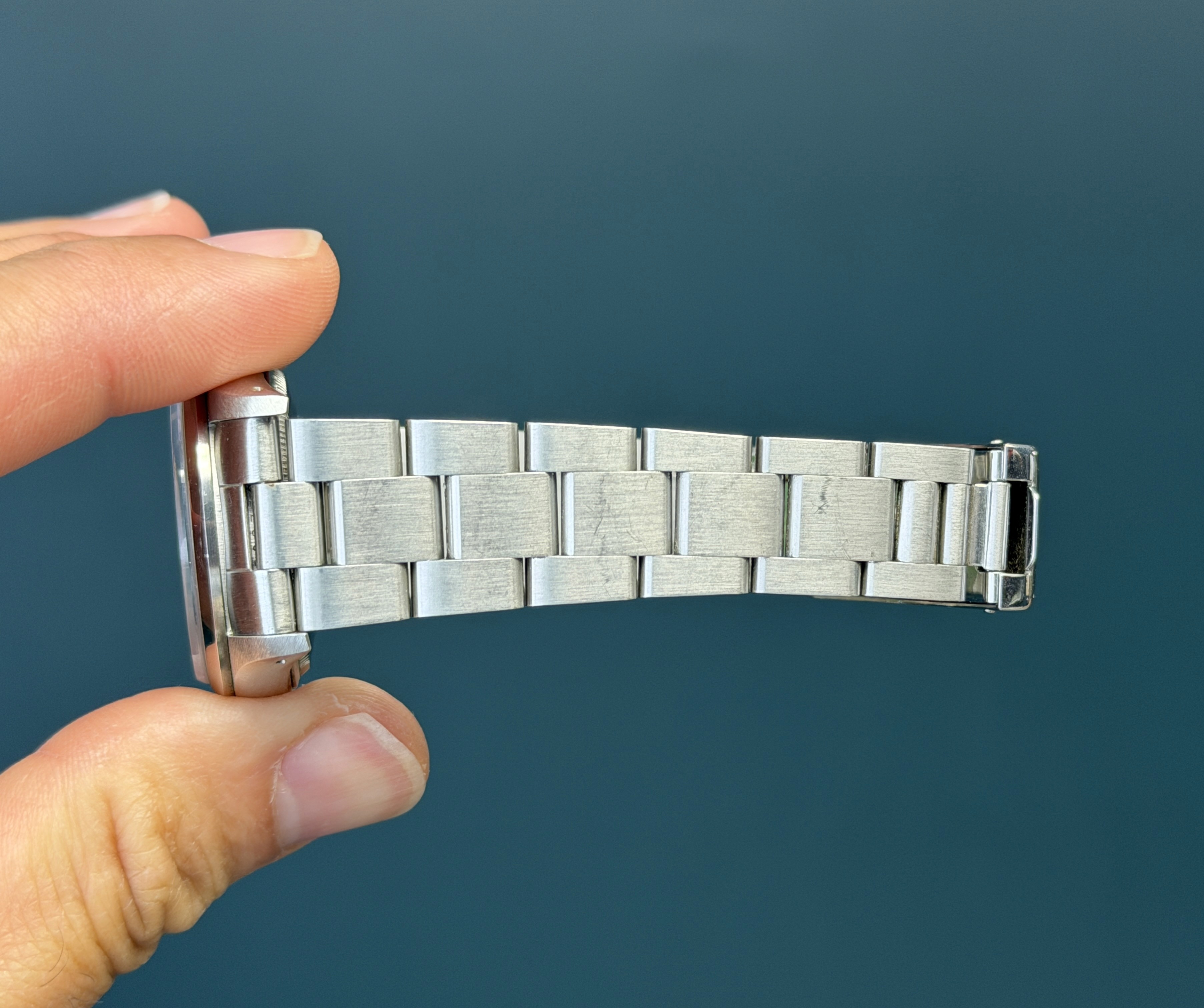 Today's example comes as watch only and is in excellent unpolished condition. The no holes case is razor sharp and crisp. The Tropical toned dial is mint and shows no visible wear. The bracelet has 12 links and show no stretch. A top example in its reference class with a charming tropical dial ready to go!
