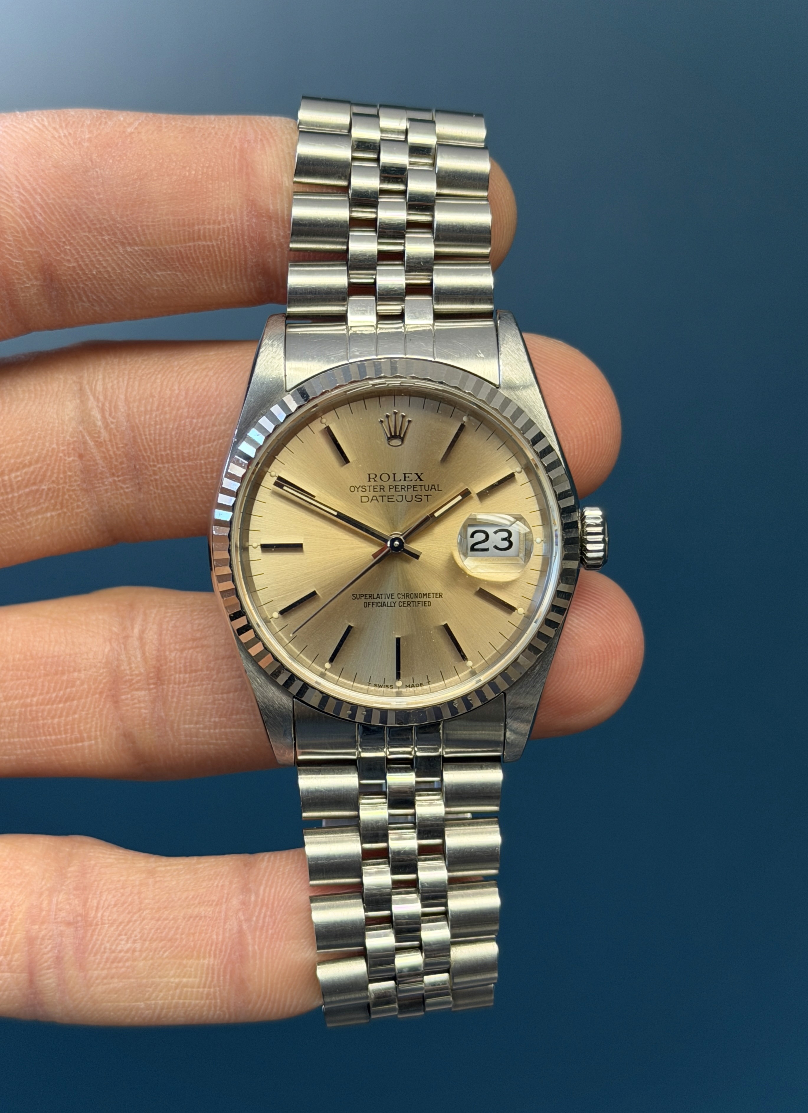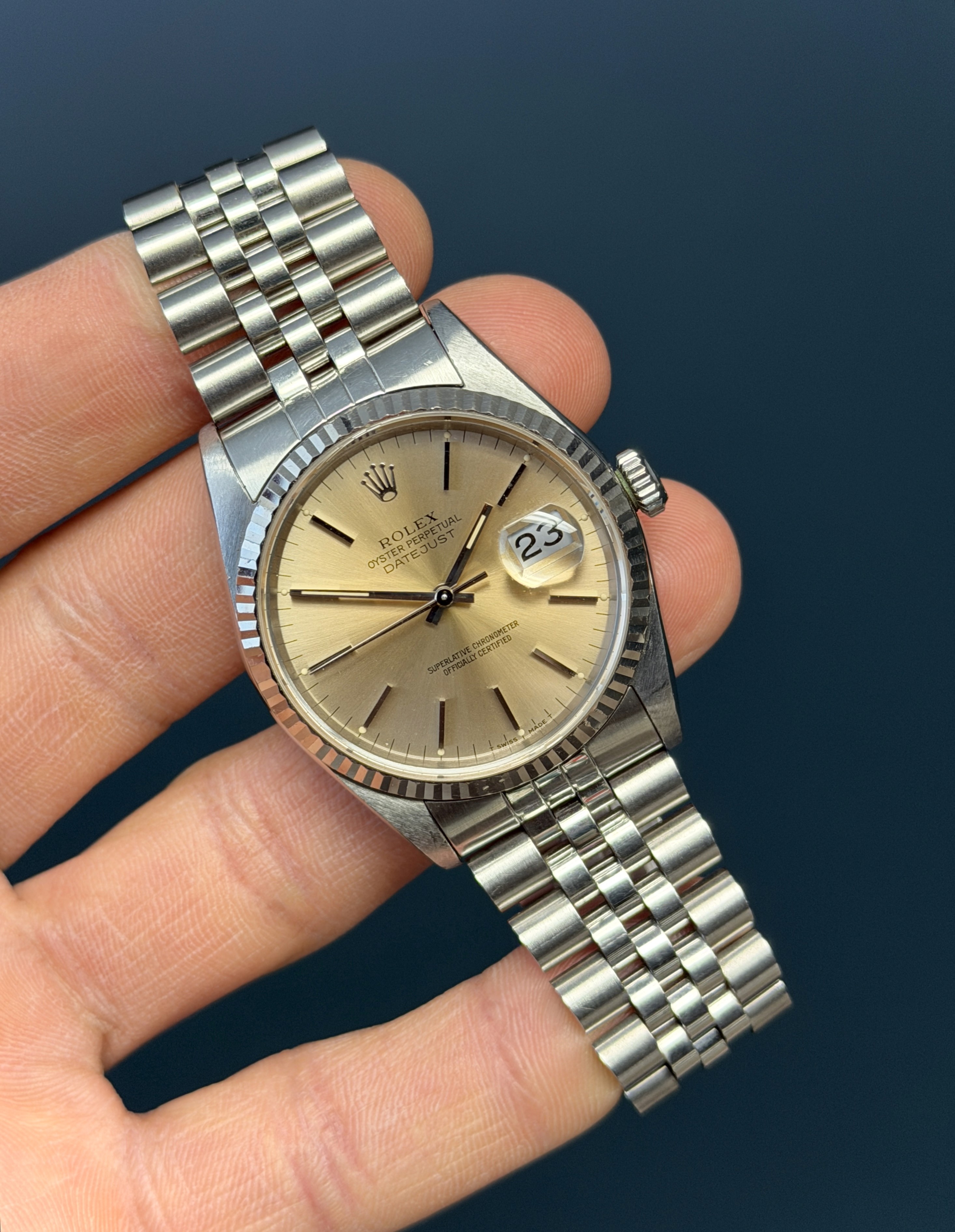 The Rolex Datejust reference 16234 is a timeless and iconic timepiece renowned for its elegant design and precision engineering. With a classic White gold bezel and holes stainless steel case measuring 36mm in diameter, this watch exudes understated luxury suitable for any occasion. Its Tropical dial features a "Pink" tone with date window at the 3 o'clock position, enhanced by the iconic Cyclops lens for magnified legibility. Powered by Rolex's reliable self-winding mechanical movement, the Datejust 16234 promises exceptional accuracy and durability. Finished with a stainless steel Jubilee bracelet , this watch epitomizes the perfect balance between sophistication and functionality, making it a cherished companion for all.