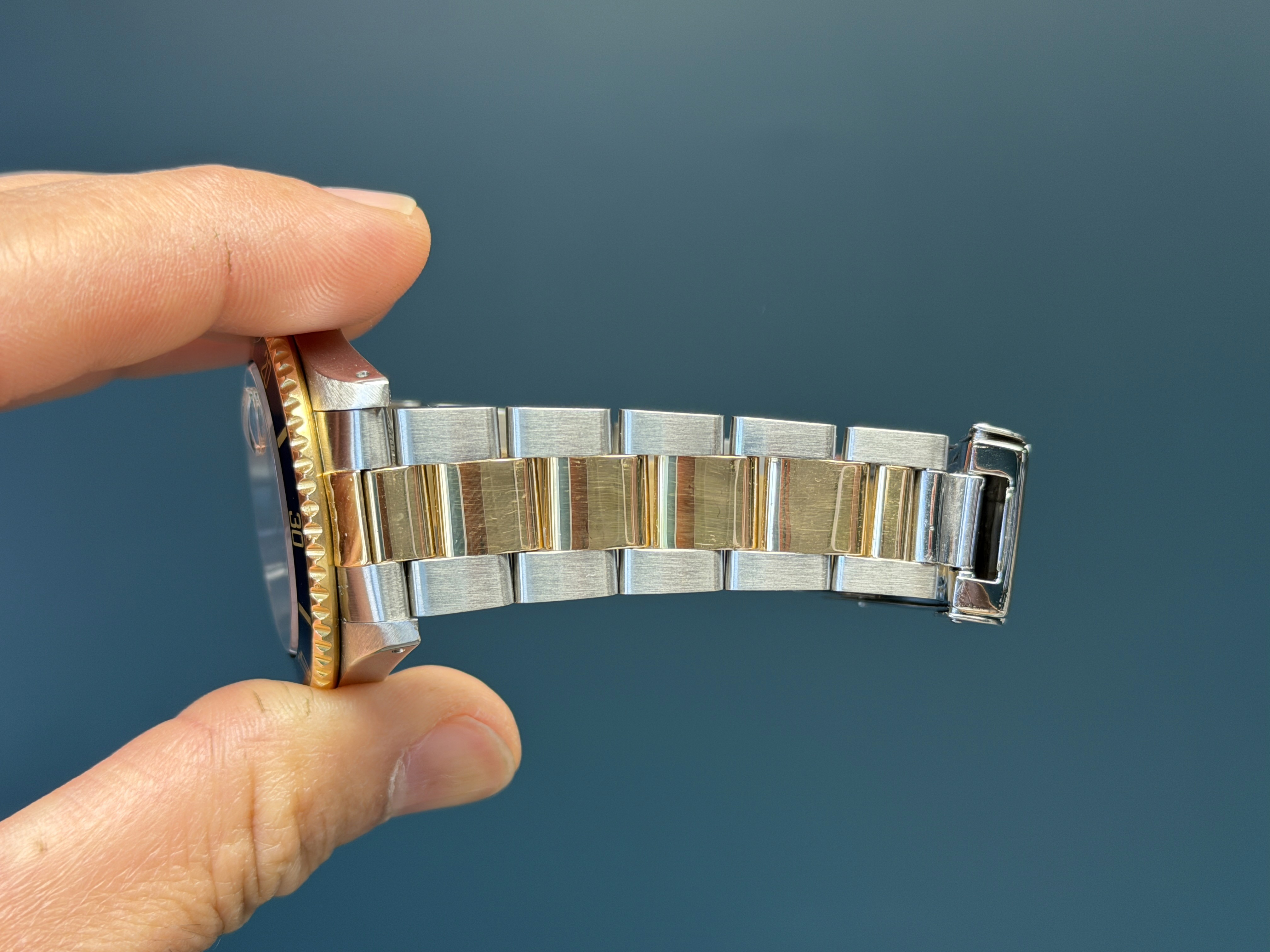 The standout Serti dial, set with diamonds and blue sapphires, adds exceptional depth and exclusivity, elevating the classic Submariner design while retaining its iconic blue dial and matching unidirectional bezel. Powered by the legendary Rolex Caliber 3135 and water-resistant to 300 meters. The case is excellent with thick lugs. The bracelet has a total of 11 links + dive extension and shows no stretch. This reference offers both performance and prestige—an exceptional choice for collectors seeking a distinctive and highly collectible Submariner.