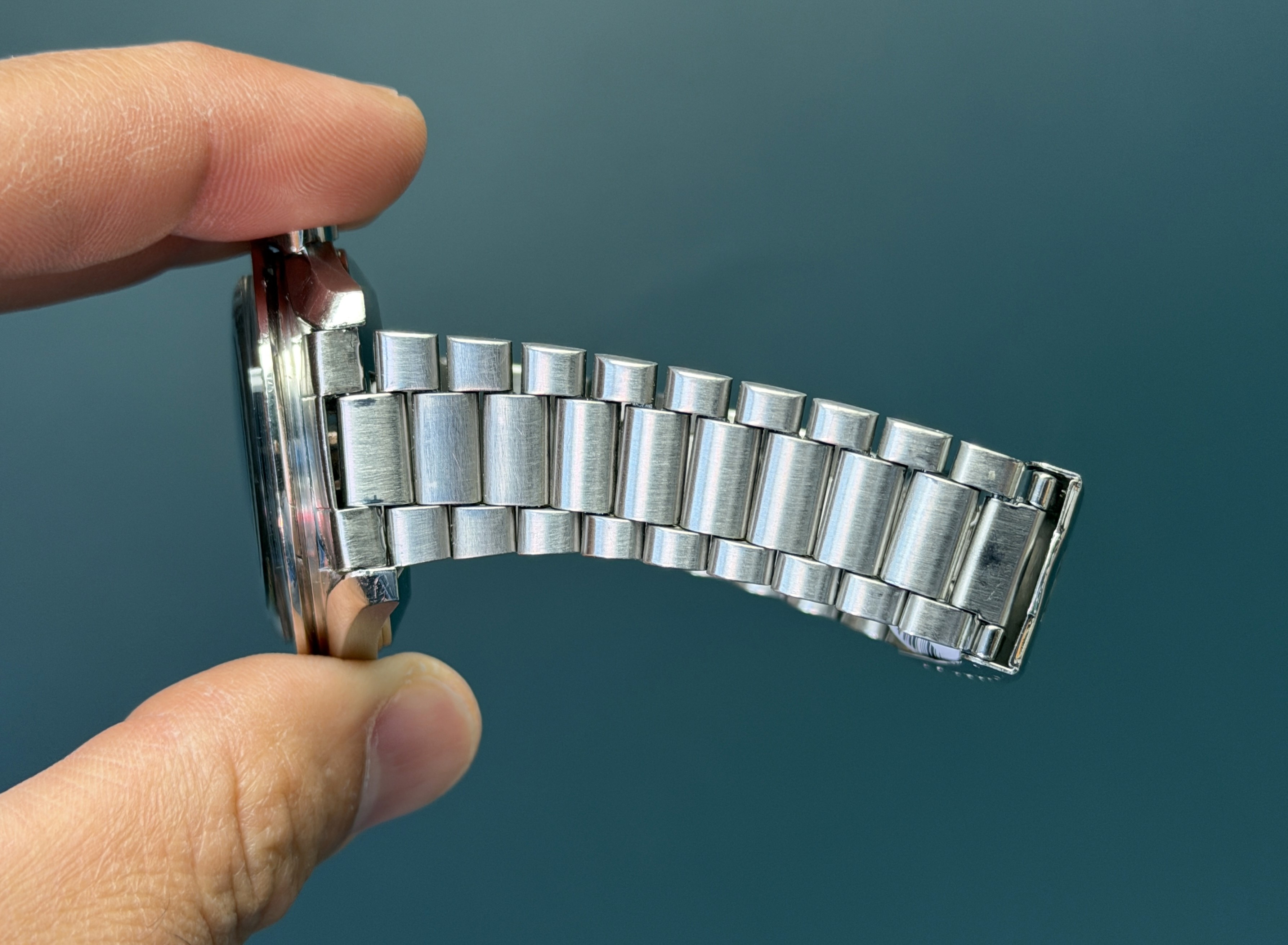 This example is in excellent vintage condition. The case and bezel are sharp and crisp. The dial is excellent with vivid yellow patina . The bracelet has 2 removable links and shows no stretch.