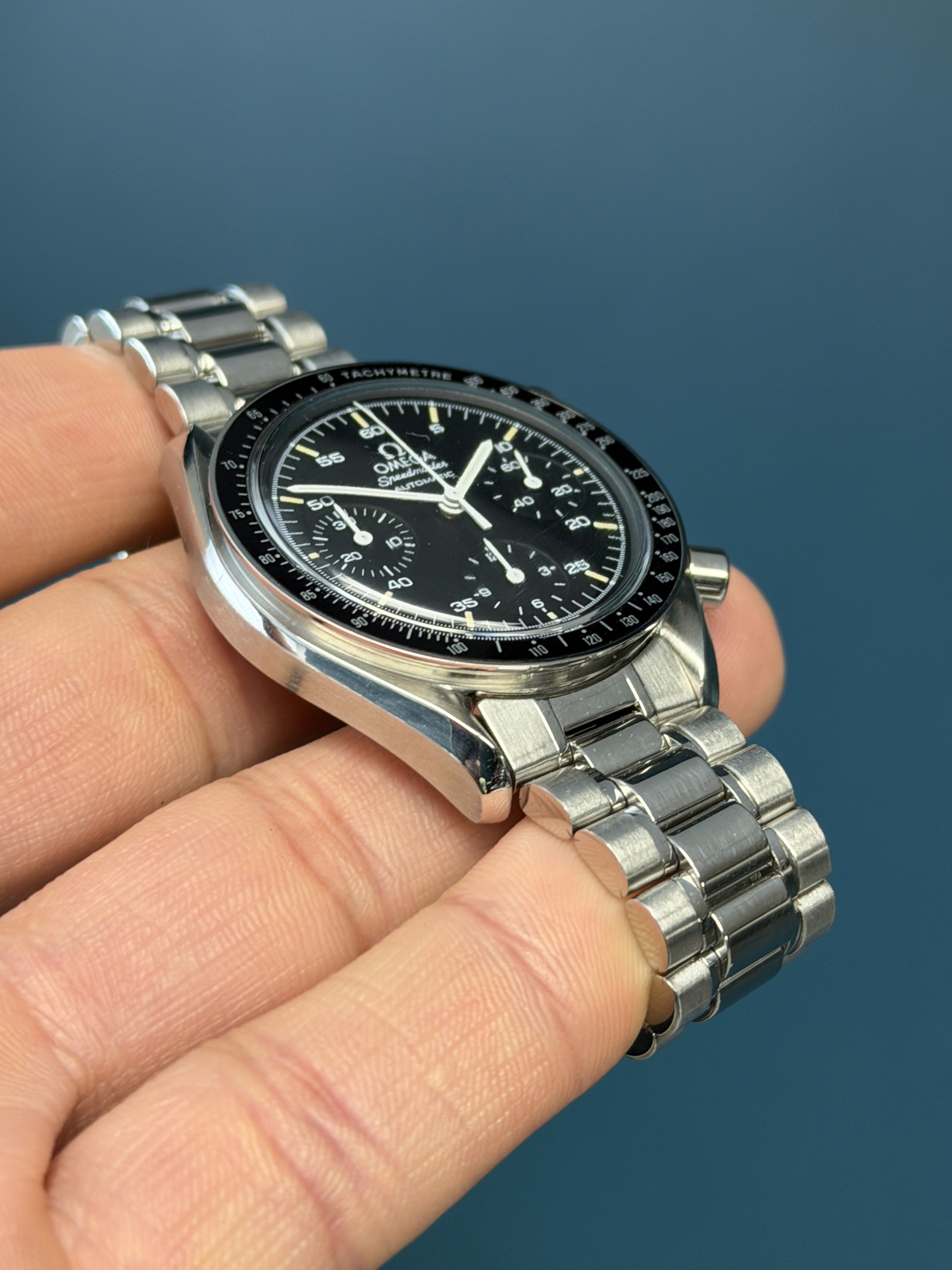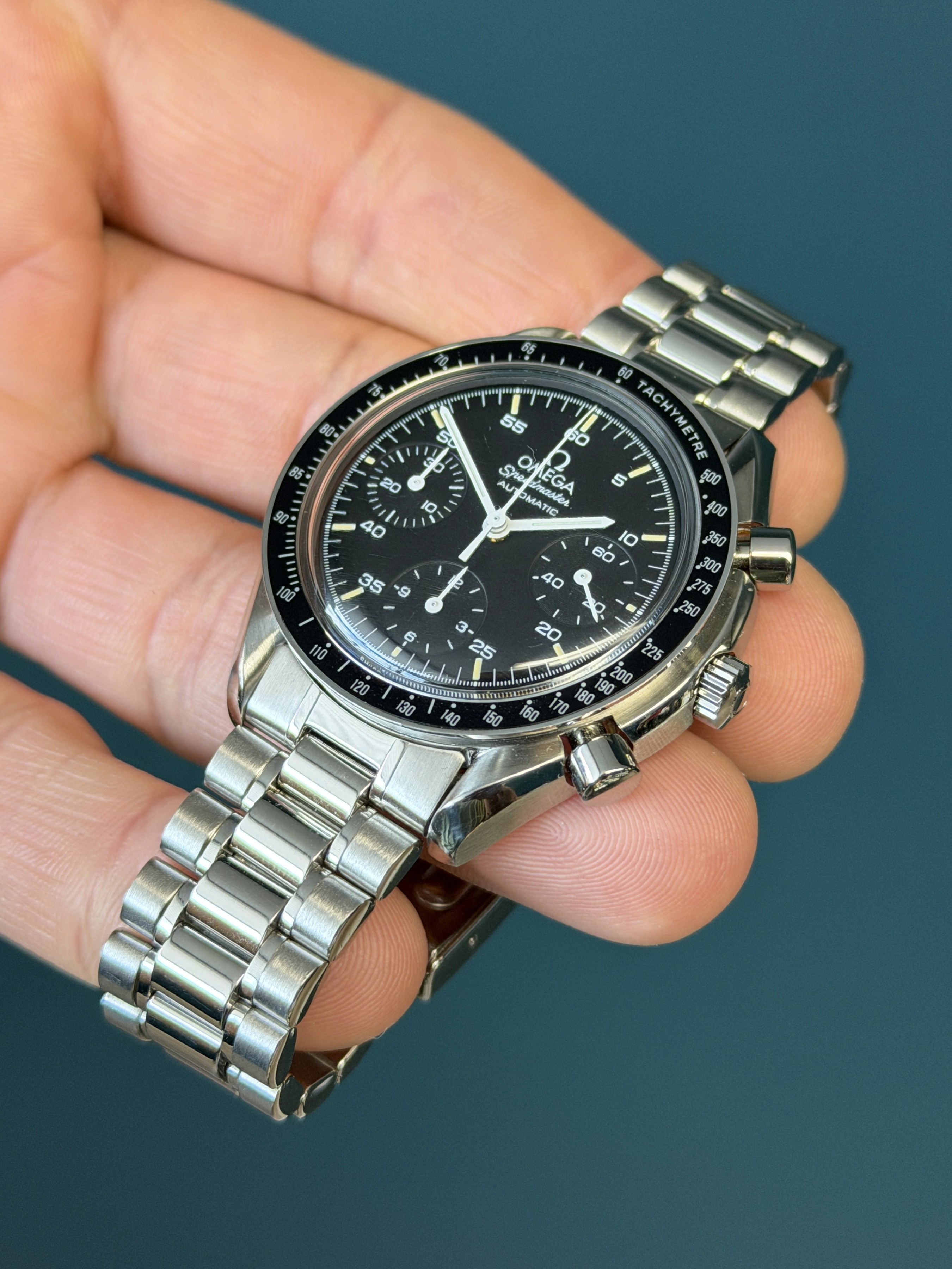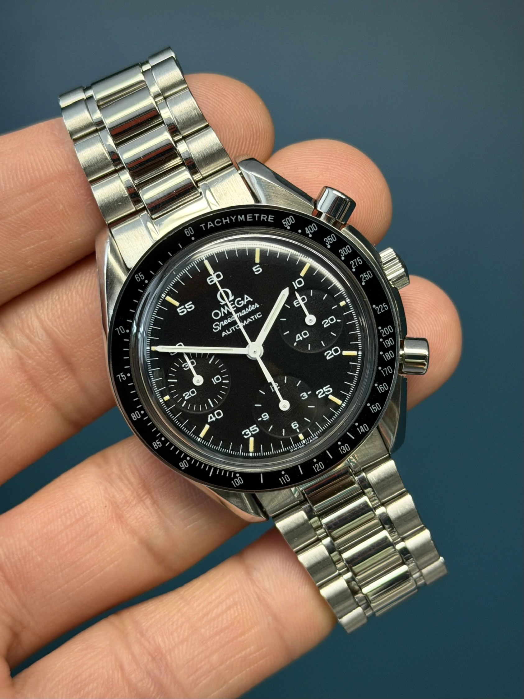 The Omega Speedmaster Reduced Reference 3510.50 is a versatile and iconic timepiece that captures the essence of the legendary Speedmaster design in a more compact and accessible form. Featuring a 39mm stainless steel case, this watch is perfect for those who appreciate the classic Speedmaster aesthetics but prefer a smaller, more wrist-friendly size. The black dial is equipped with three sub-dials for chronograph functions, luminous hands, and hour markers, ensuring excellent readability and functionality. Powered by the Omega Caliber 3220 automatic movement, the Speedmaster Reduced guarantees precise timekeeping and reliability. Its Hesalite crystal and tachymeter bezel add to its vintage charm, while the stainless steel bracelet provides a comfortable and secure fit. The Omega Speedmaster Reduced 3510.50 is a timeless piece, ideal for both seasoned collectors and newcomers to the world of luxury watches, offering a blend of heritage, style, and practicality.