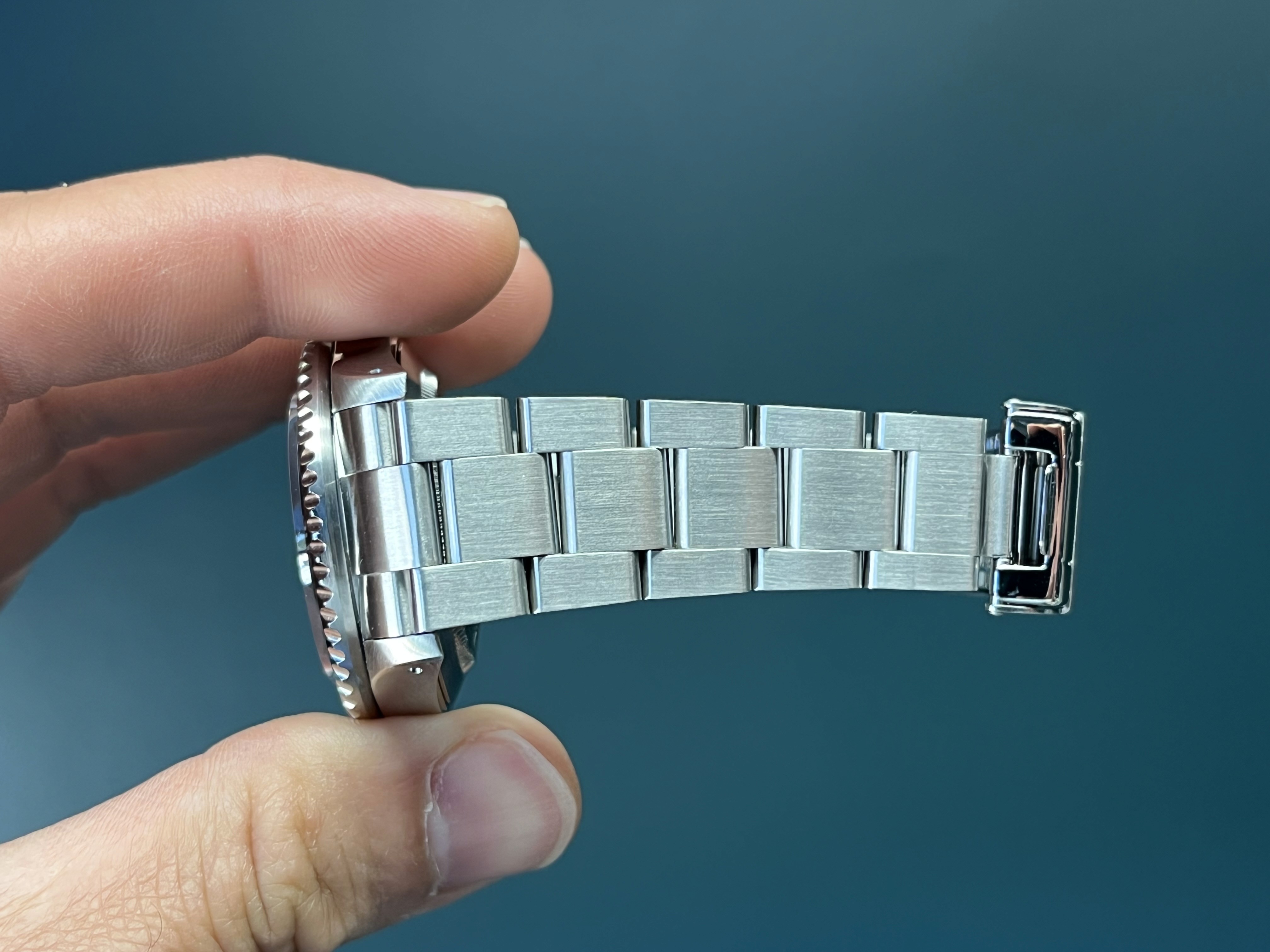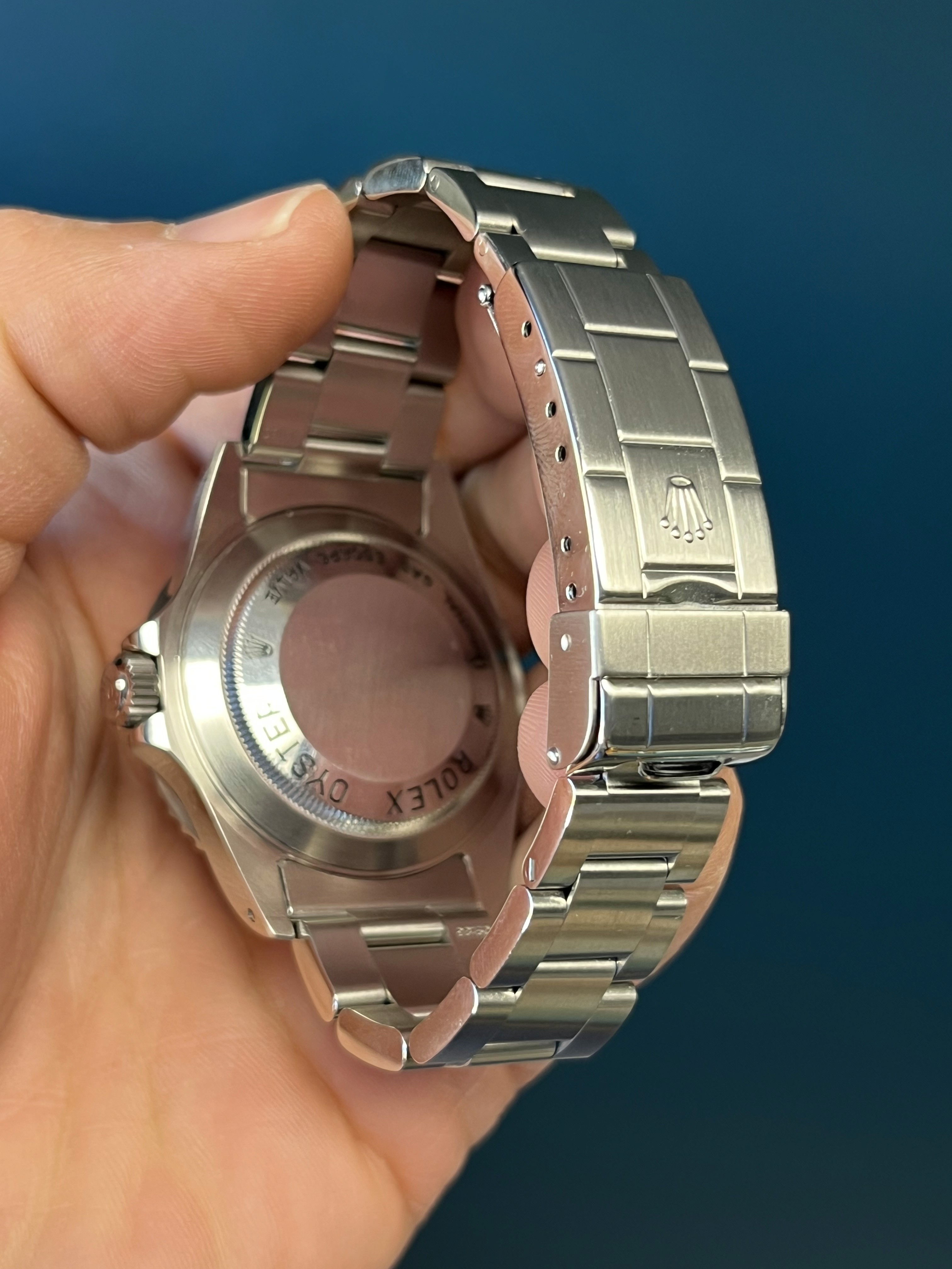 This example comes to us as a full set with box, papers and extras, with open date papers. The watch itself is in excellent condition showcasing a razor-sharp holes case and crisp bezel. The Solid End link bracelet has 12 links + dive extension and shows no stretch. Here is an excellent condition example accompanied by all of its goodies.