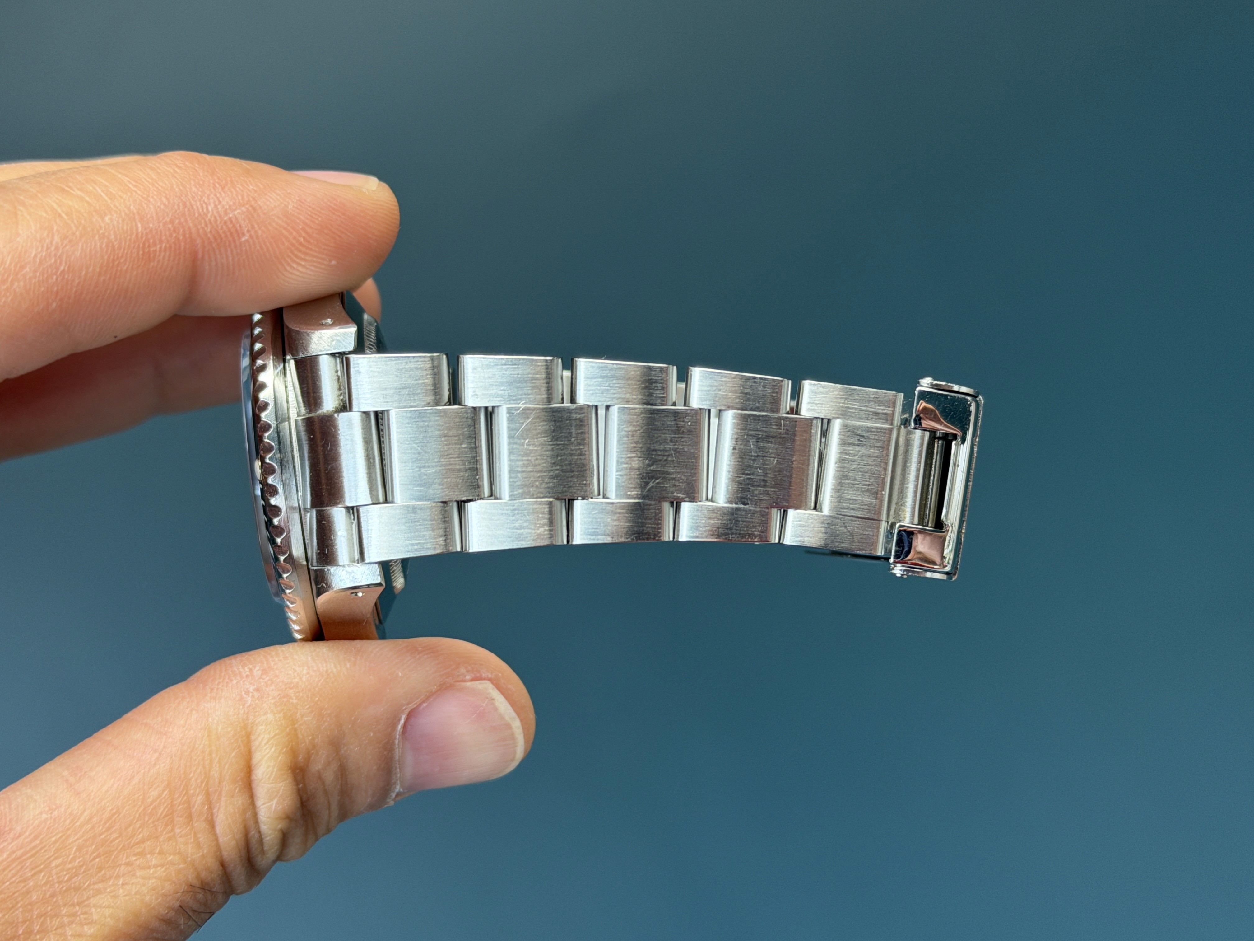 Today's example comes to us as watch only and is in nice condition with a lightly faded bezel. The case is excellent showing sharp chamfers. The Solid End Link Bracelet has 12 links with no stretch. The tritium dial is excellent with warm matching hues throughout the hour plots and hands. Just an overall excellent full set ready to go!