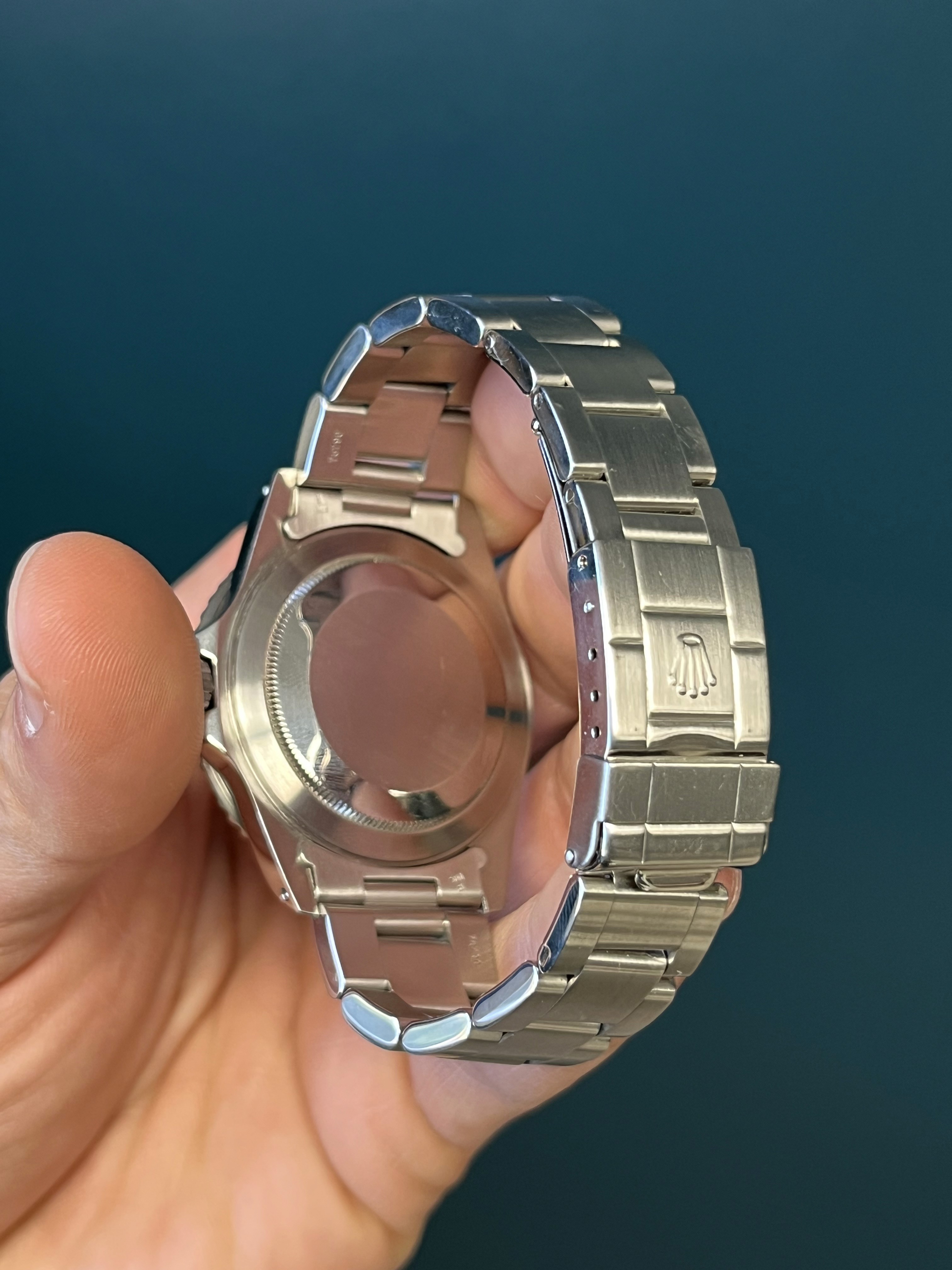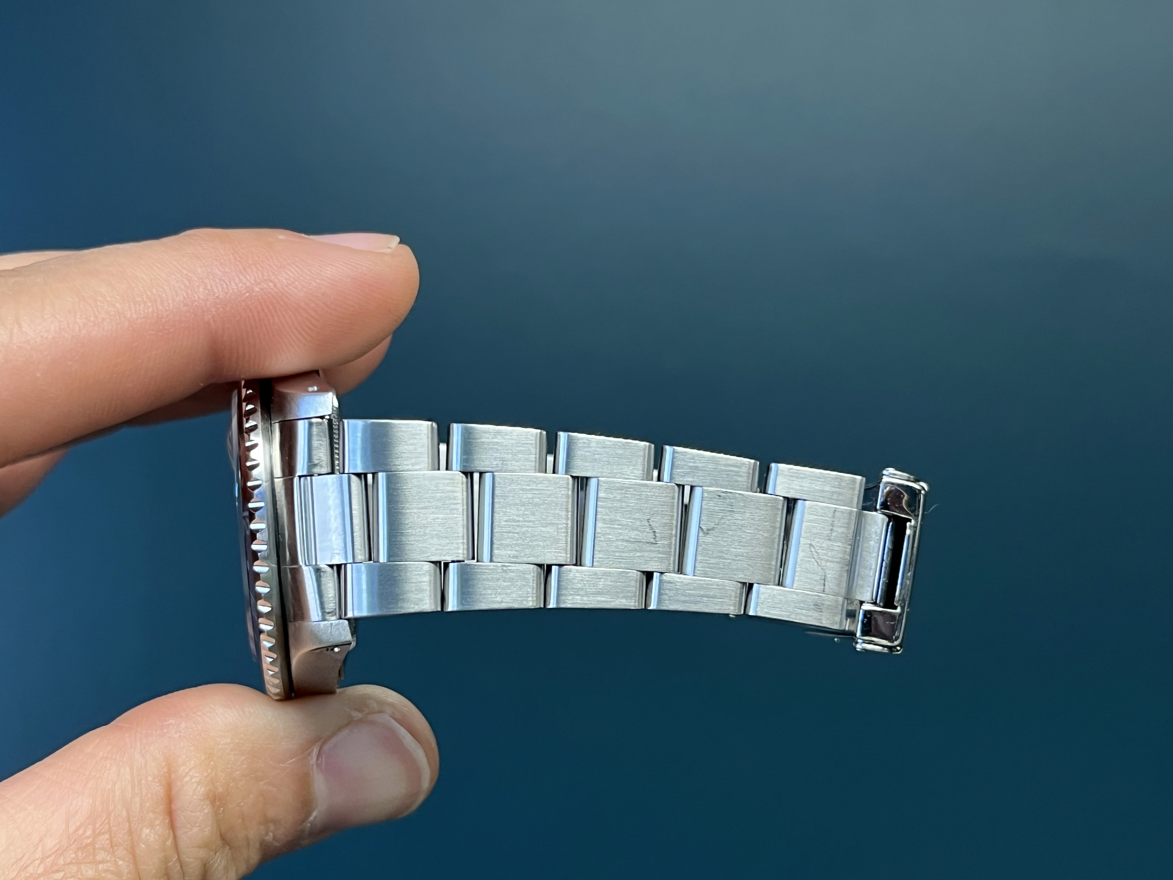 This example comes watch only and is in excellent retail ready condition. The case and Pepsi insert are in excellent condition. The dial is excellent with all matching patina. The solid link Oyster bracelet has 12 total links and shows no stretch. Here is an excellent example with a great look that wont break the bank!