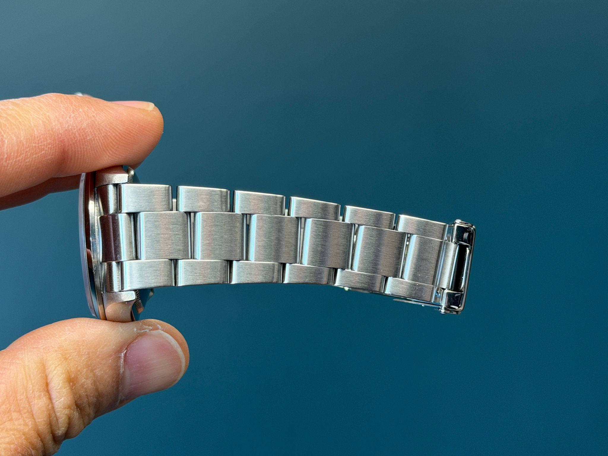 Today's example comes to us watch only and in excellent retail ready condition. The no holes case is excellent showing thick and even lugs. The dial is mint and shows no wear. The solid end link bracelet is fully linked and shows no stretch.