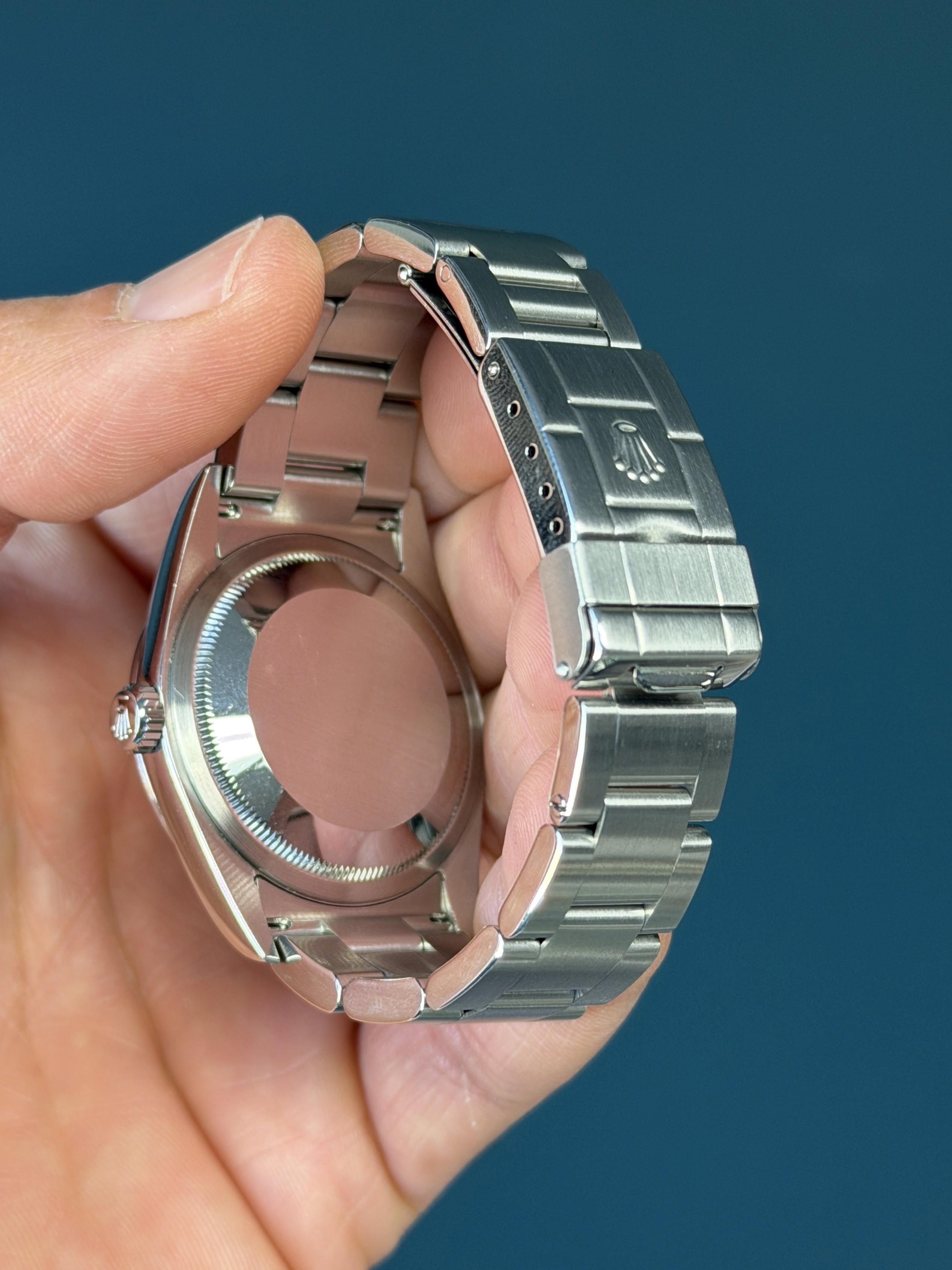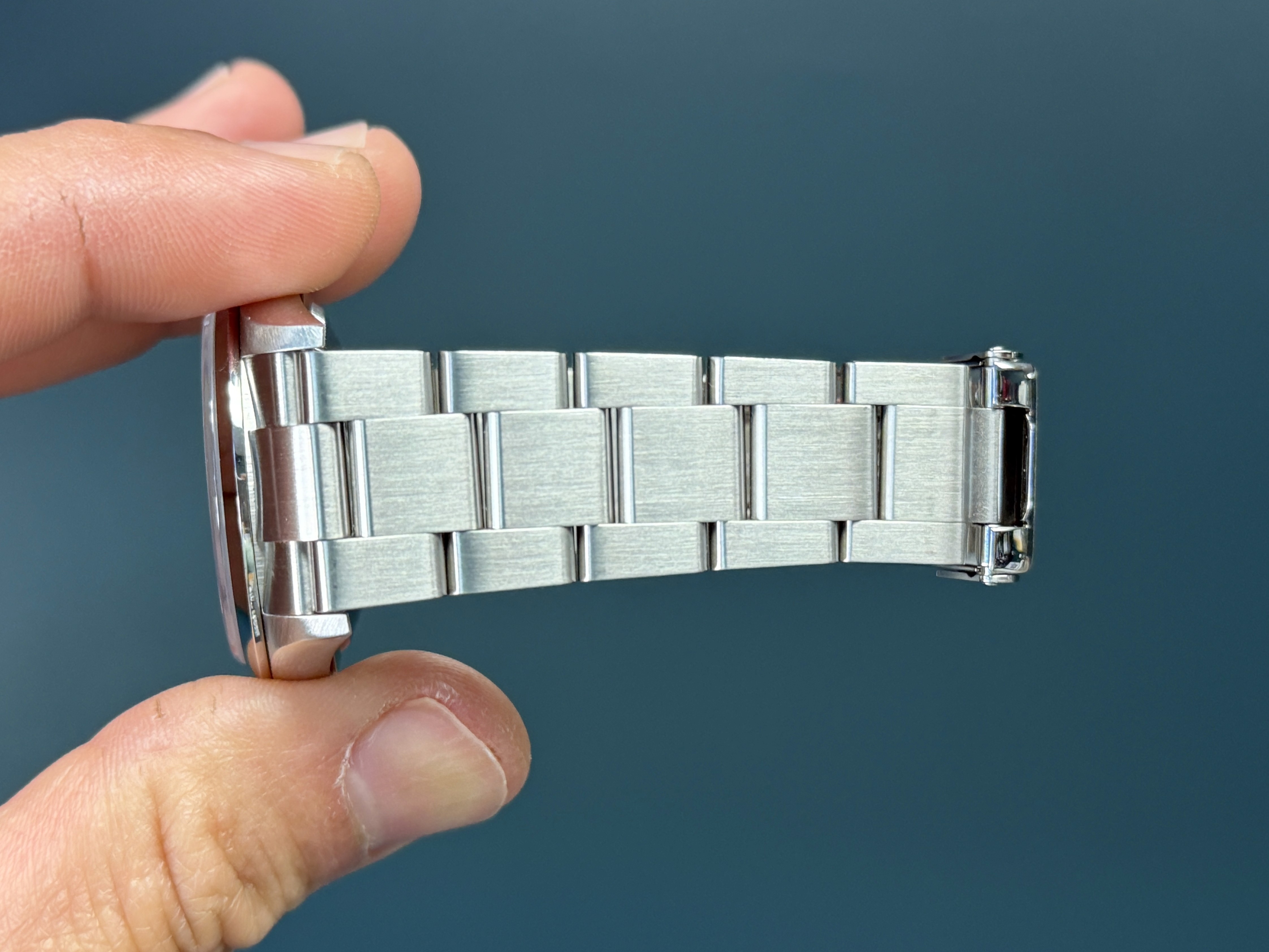 Today's example comes to us as watch only and is in excellent retail ready condition. The no holes case is crisp and excellent. The dial is mint and shows no wear. The solid end link bracelet has 12 total links and shows no stretch. Here we have a stud top example ready to go!