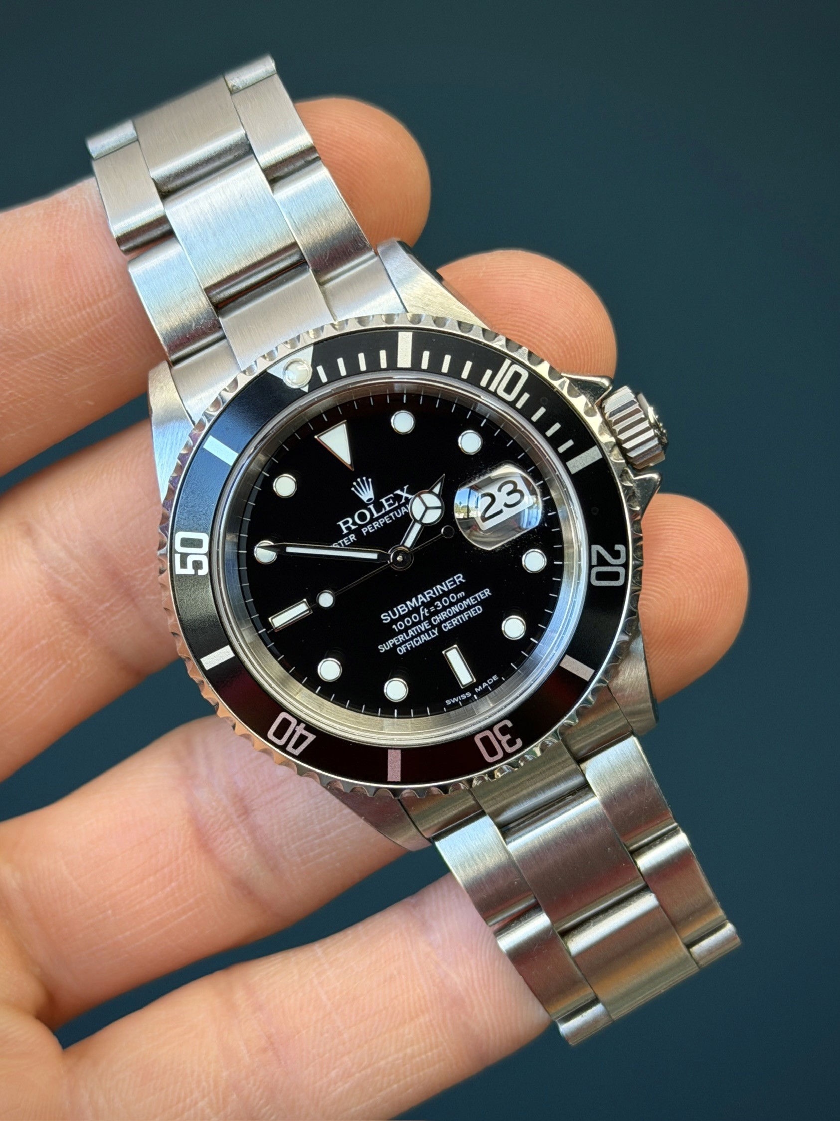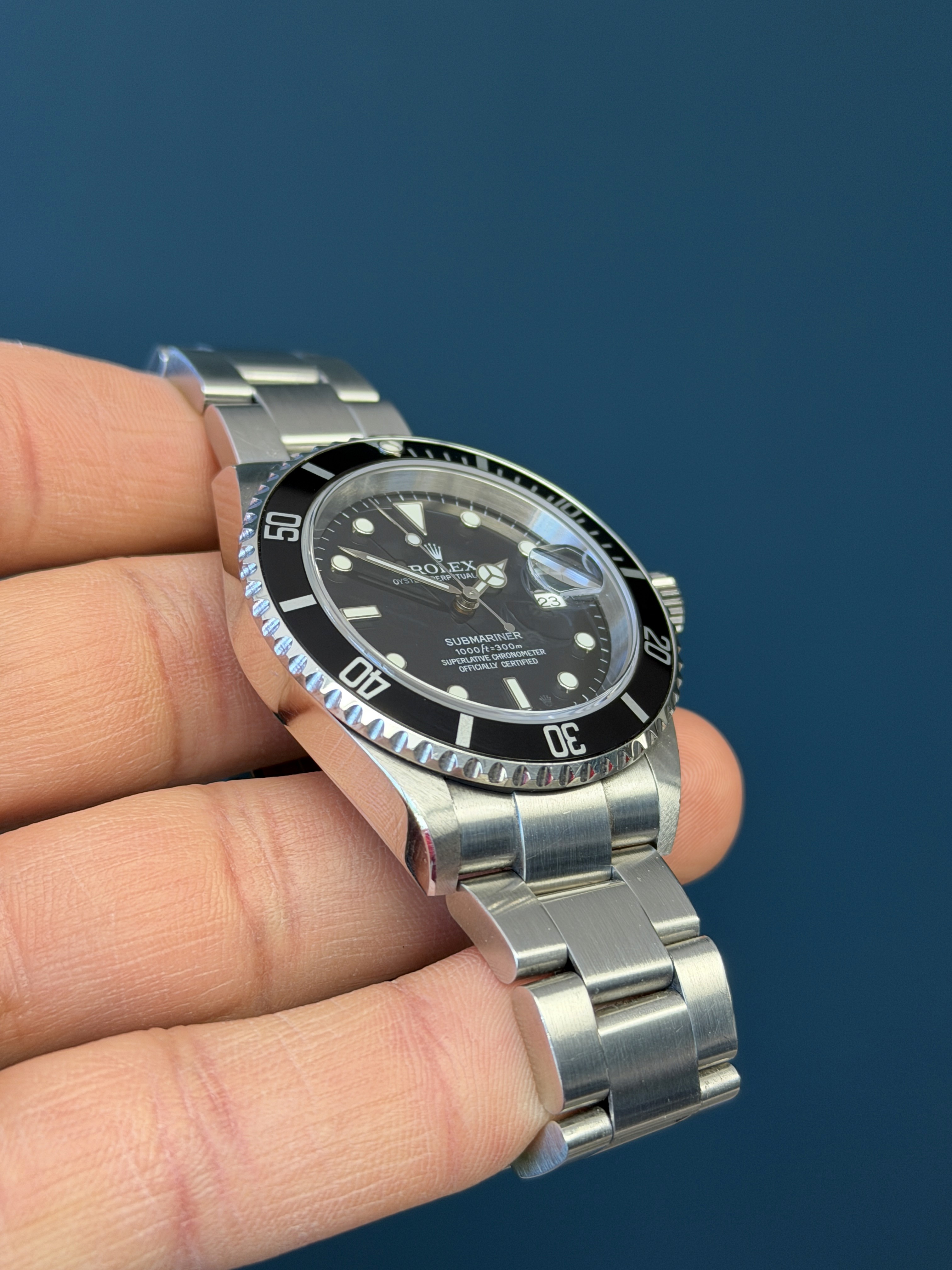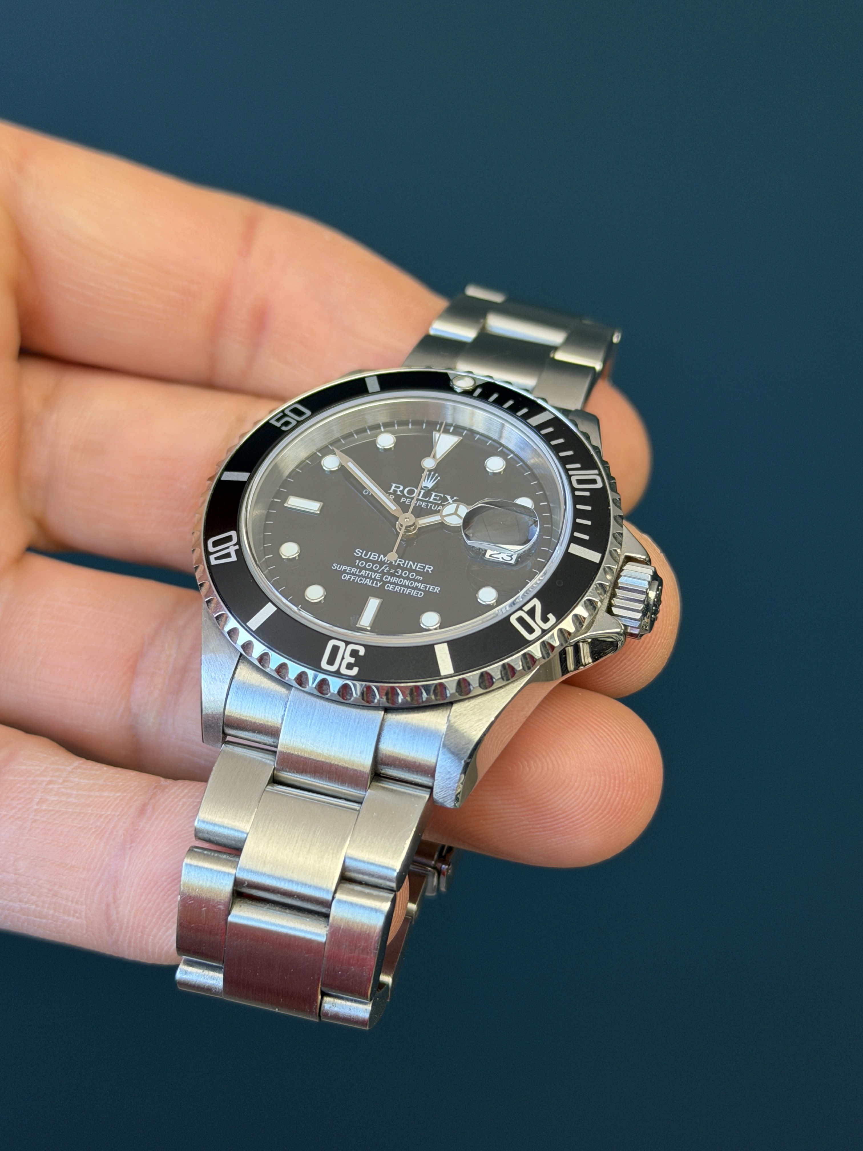 The Rolex 16610 is a highly sought-after vintage timepiece known for its distinctive design. This classic Submariner model, produced until the mid-2000s, features a stainless steel case giving it a sleek and timeless appearance. Renowned for its durability, water resistance, and iconic aesthetics, the Rolex 16610 is a beloved choice among watch enthusiasts and collectors.