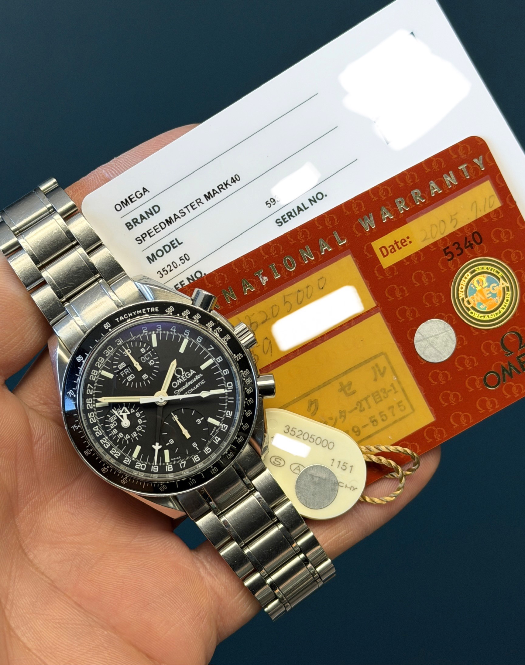 Today's example comes to us with card and serial tag dated 7/05. it also comes with an ebay authenticity card from 2026. The watch itself is in excellent condition and has a fully linked bracelet showing no stretch. The dial has all matching egg shell patina. The chronograph and date features function crisp as they should. The case lugs are sharp and in excellent condition. A lovely collect example fresh to market!