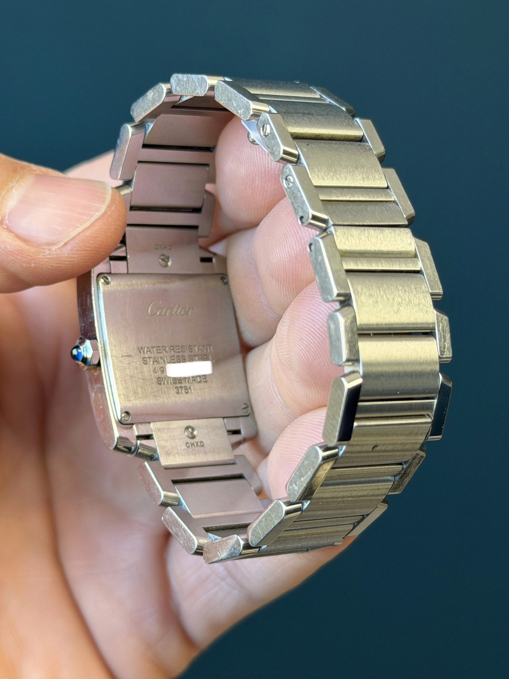 The Cartier Tank reference 3751 (W4TA0009) is a refined interpretation of one of the most enduring designs in watchmaking history. Staying true to the timeless Tank silhouette, this model elevates the classic aesthetic with factory-set diamond accents, adding a touch of brilliance while preserving the elegance and restraint for which Cartier is known.