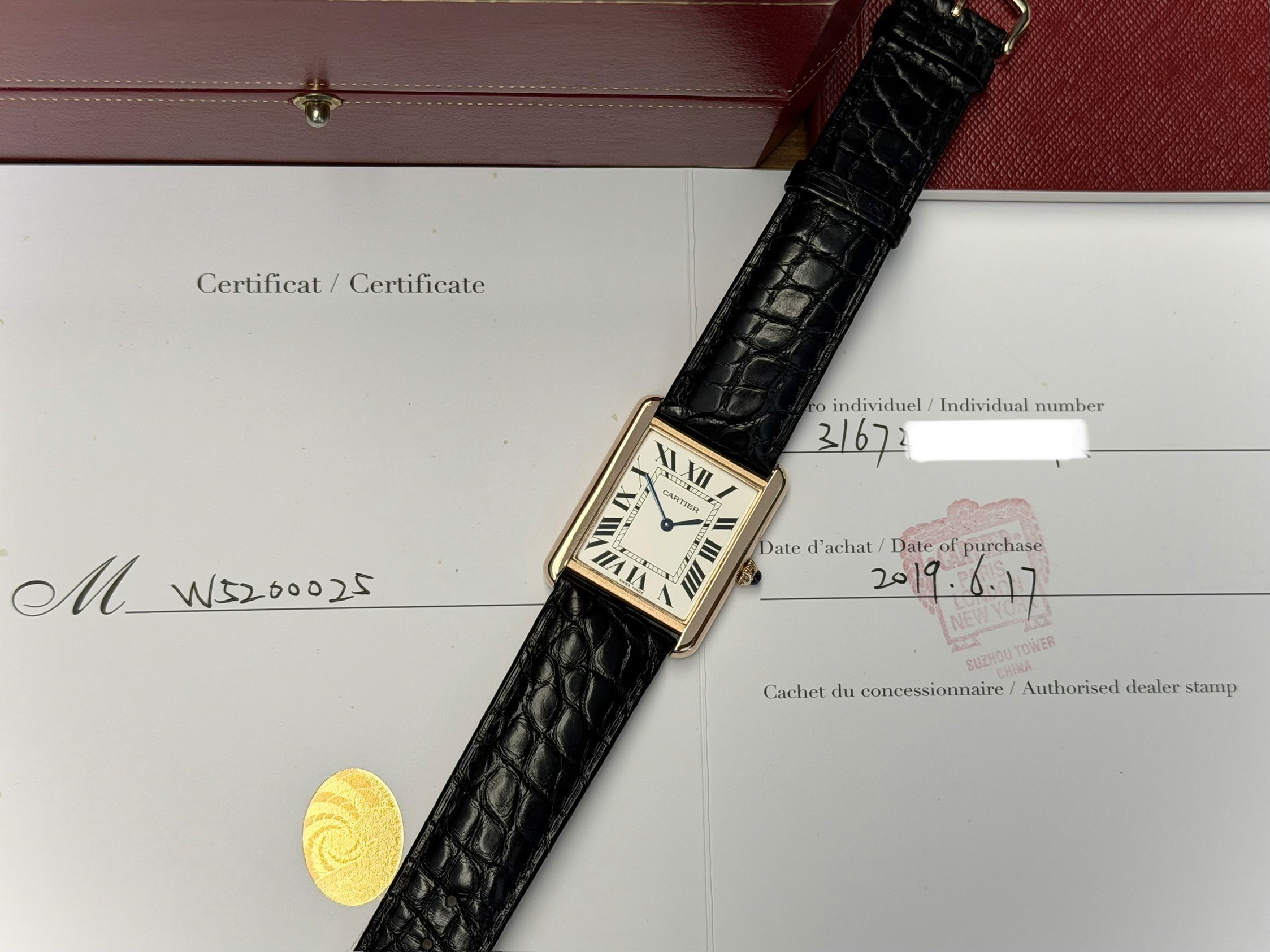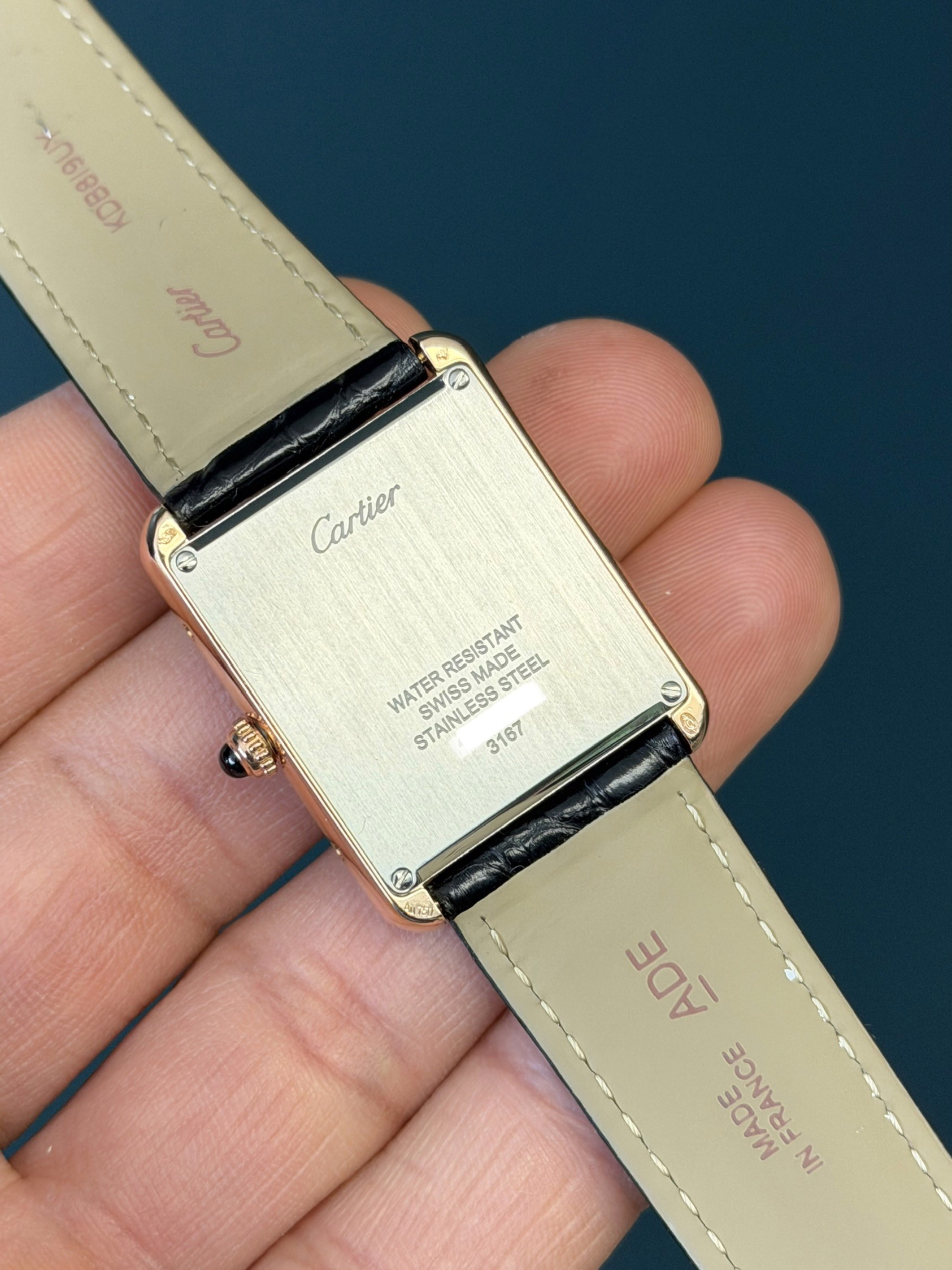 The case is executed in 18k rose gold paired with a high-quality leather strap and matching Cartier buckle, ensuring both comfort and luxury. With a water resistance of 30 meters, it remains suitable for daily wear while preserving its dress watch character.