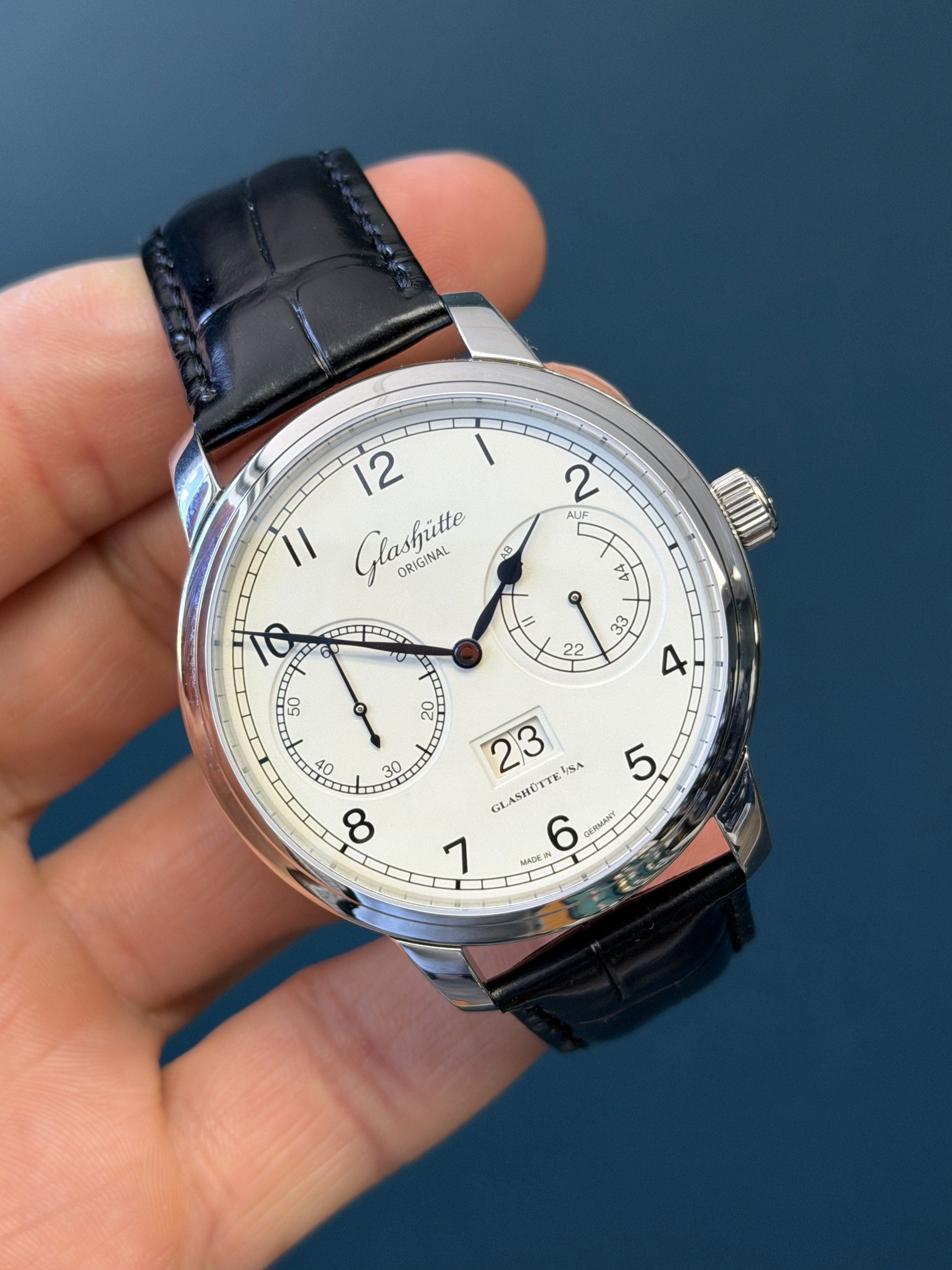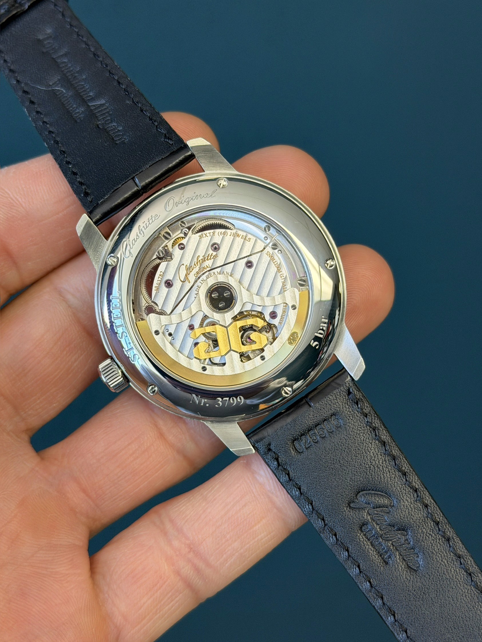 This example (No. 3799) is offered watch only and remains in excellent condition, paired with a leather strap and deployment buckle, both also in excellent condition. A refined and highly respected Glashütte Original that delivers heritage, craftsmanship, and everyday sophistication in one distinguished timepiece.