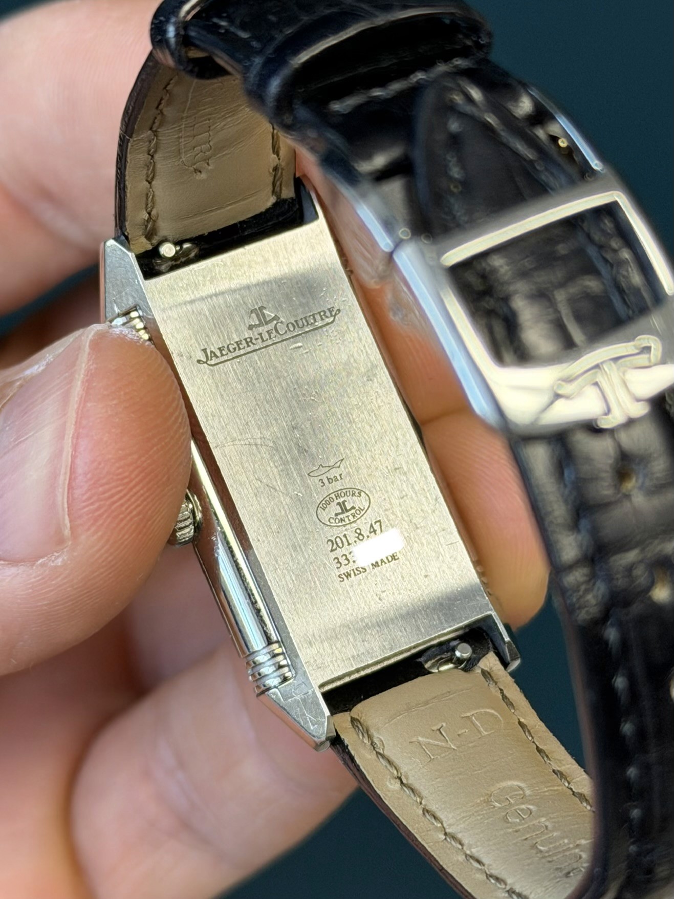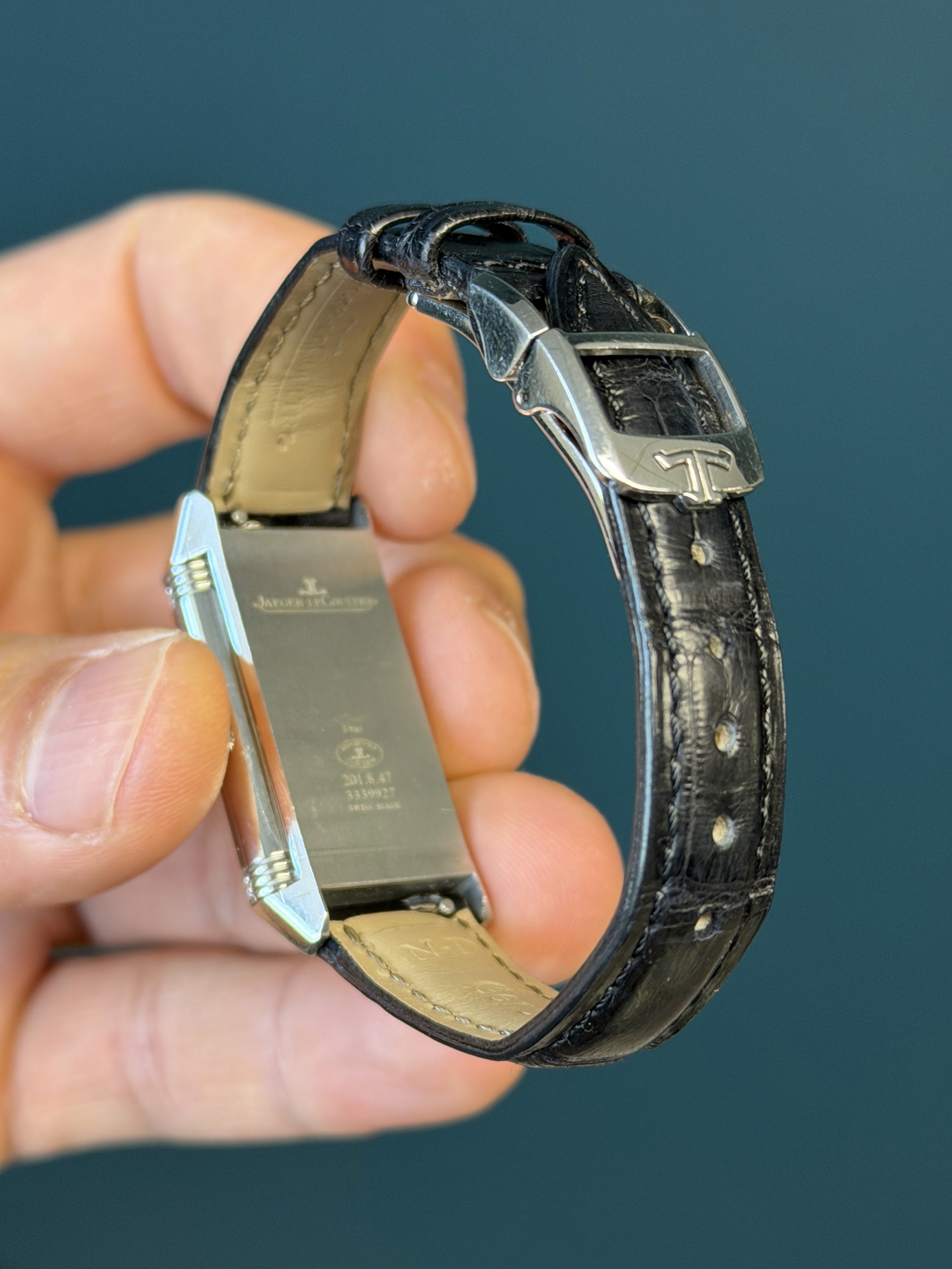 The dial features a clean and elegant layout, typically adorned with Arabic numerals, a chemin-de-fer minute track, and blued steel hands, staying true to the heritage of Jaeger-LeCoultre craftsmanship. The signature reversible case not only protects the dial but also offers versatility, allowing the wearer to showcase the solid caseback or personalize it if desired.