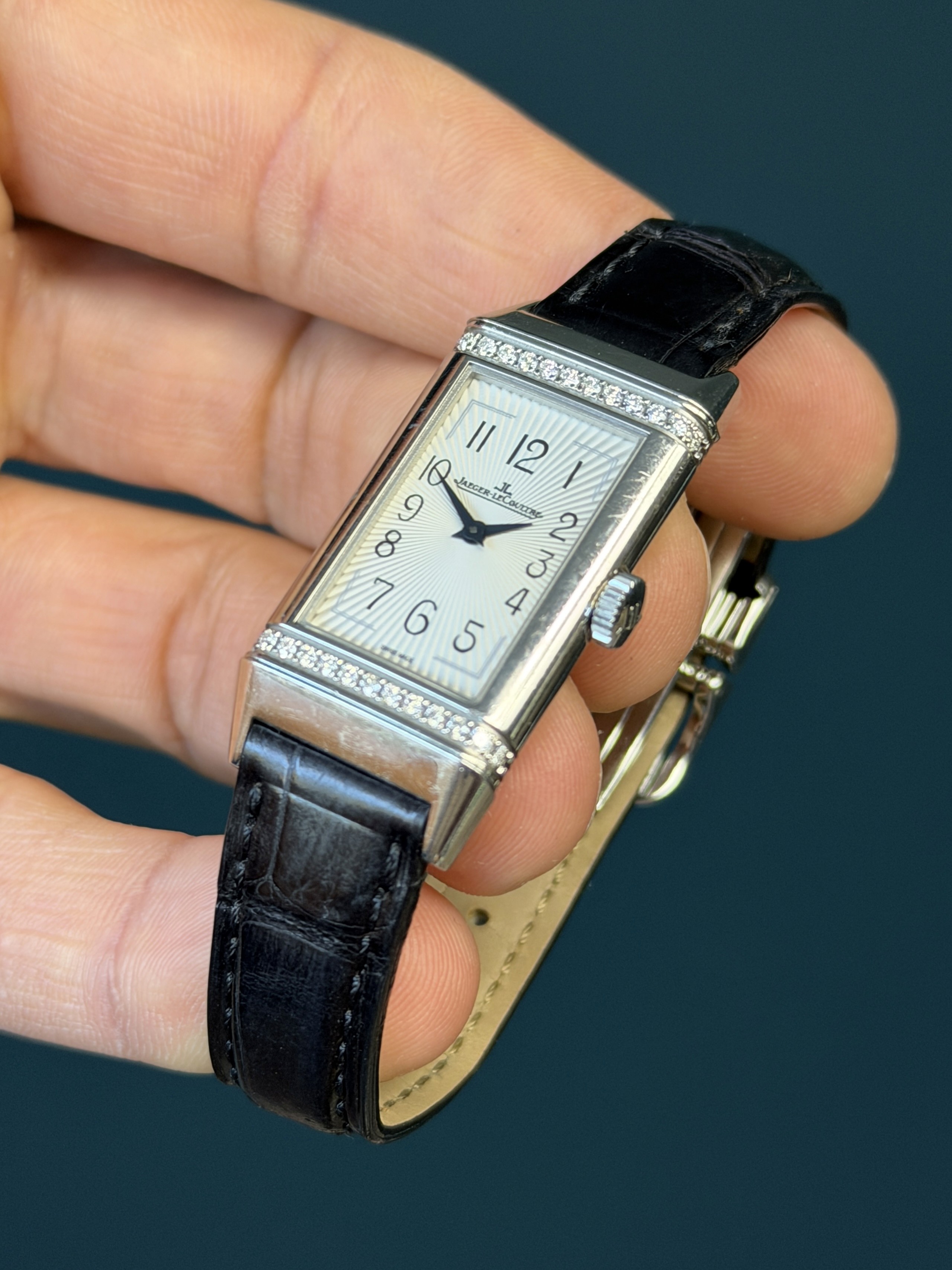 Presented in excellent vintage condition, this example retains sharp lines and a crisp case profile while showing light signs of use, with the factory diamond setting remaining bright and well-defined. A perfect blend of technical ingenuity and understated glamour, this Reverso is ideal for collectors seeking a dress watch with both heritage and a touch of elevated elegance.