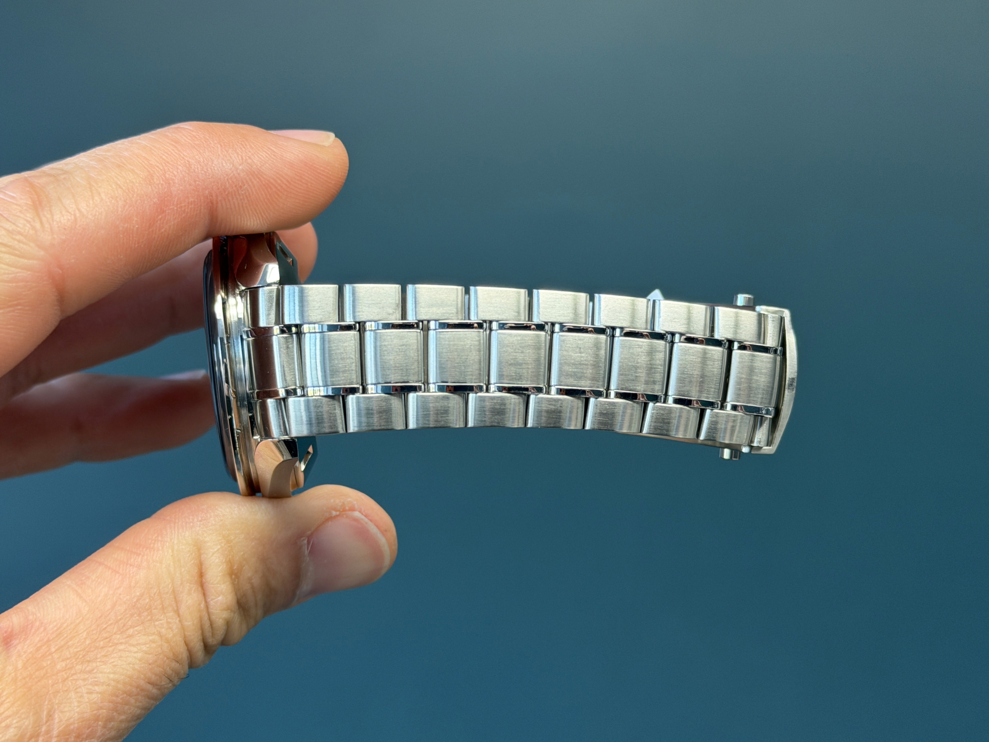 Today's example comes to us watch only. The case and bezel are excellent. The bracelet has a total of 8 removable links and shows no stretch. This example is in excellent preowned condition.